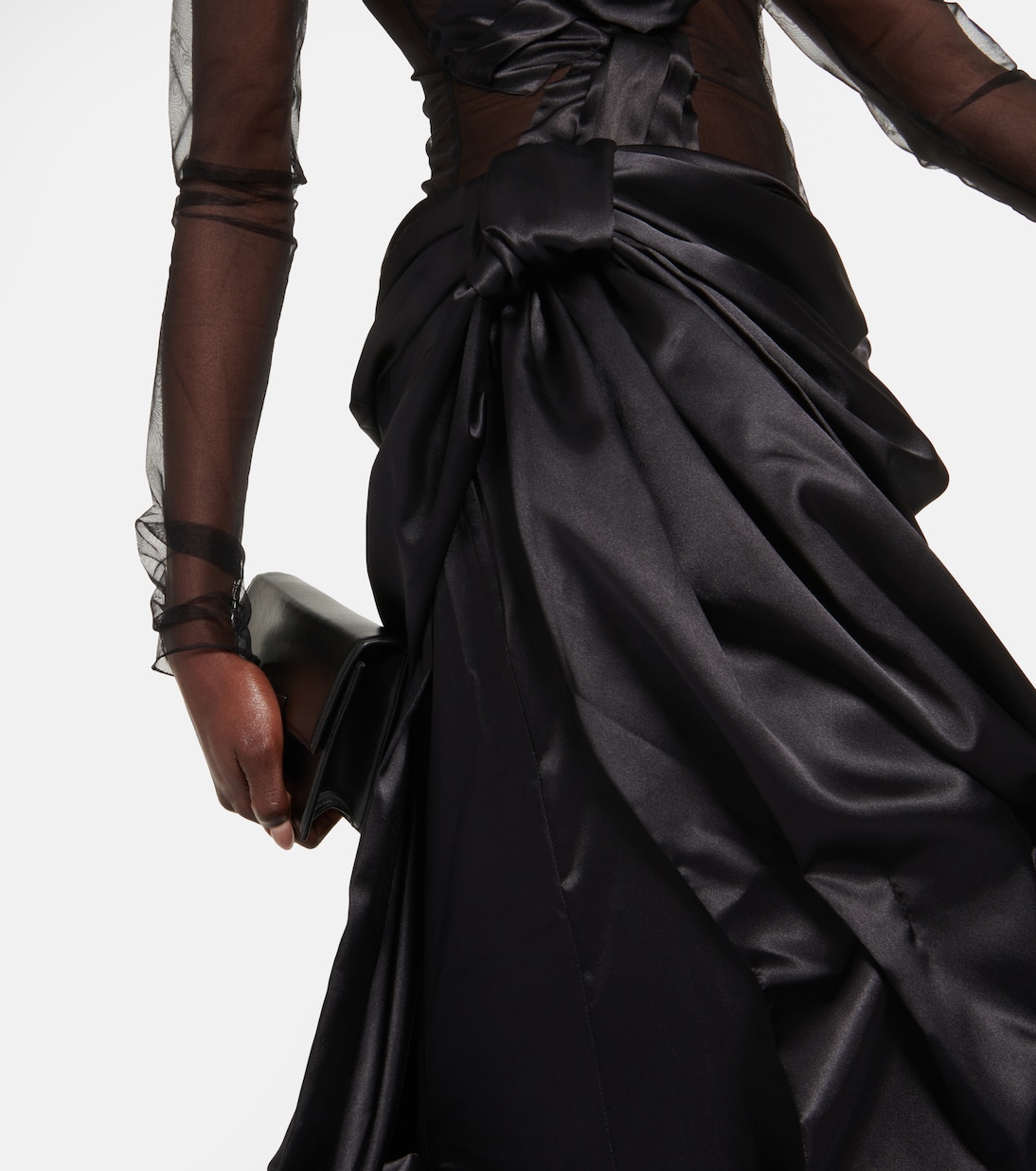 Эта юбка от Acne Studios сшита в Италии из глянцевого атласа и имеет свободный силуэт длины макси. Платье украшено драпированным бантом и разрезами спереди и сзади.