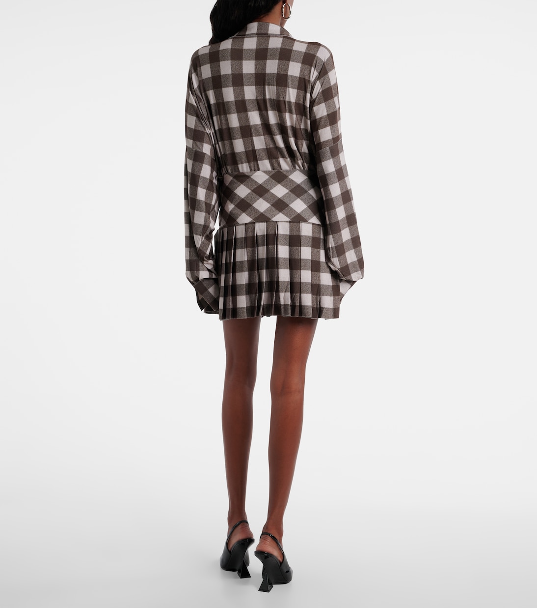 Эта юбка от Norma Kamali выполнена из ткани, тянущейся в 4 стороны, с привлекательным мини-подолом. Дизайн дополнен складками и классическим клетчатым узором.