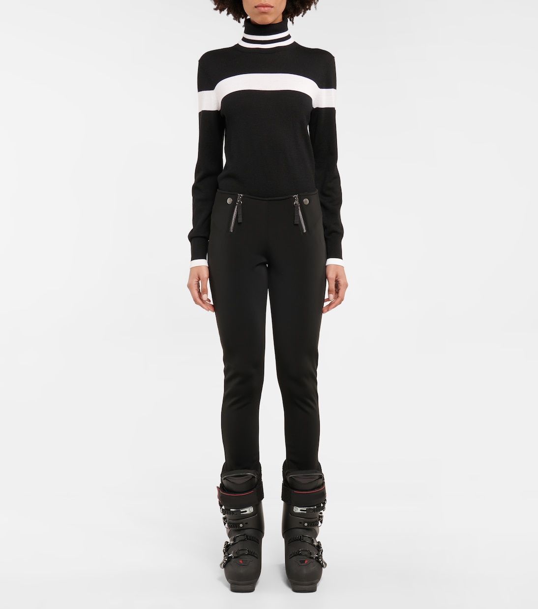 Эти бразильские горнолыжные брюки от Jet Set изготовлены в Италии из софтшелла, имеют облегающий силуэт и отделаны фурнитурой цвета оружейного металла. Материал, растягивающийся в 4 направлениях, водоотталкивающий и ветрозащитный, обеспечивает комфорт на большой высоте.