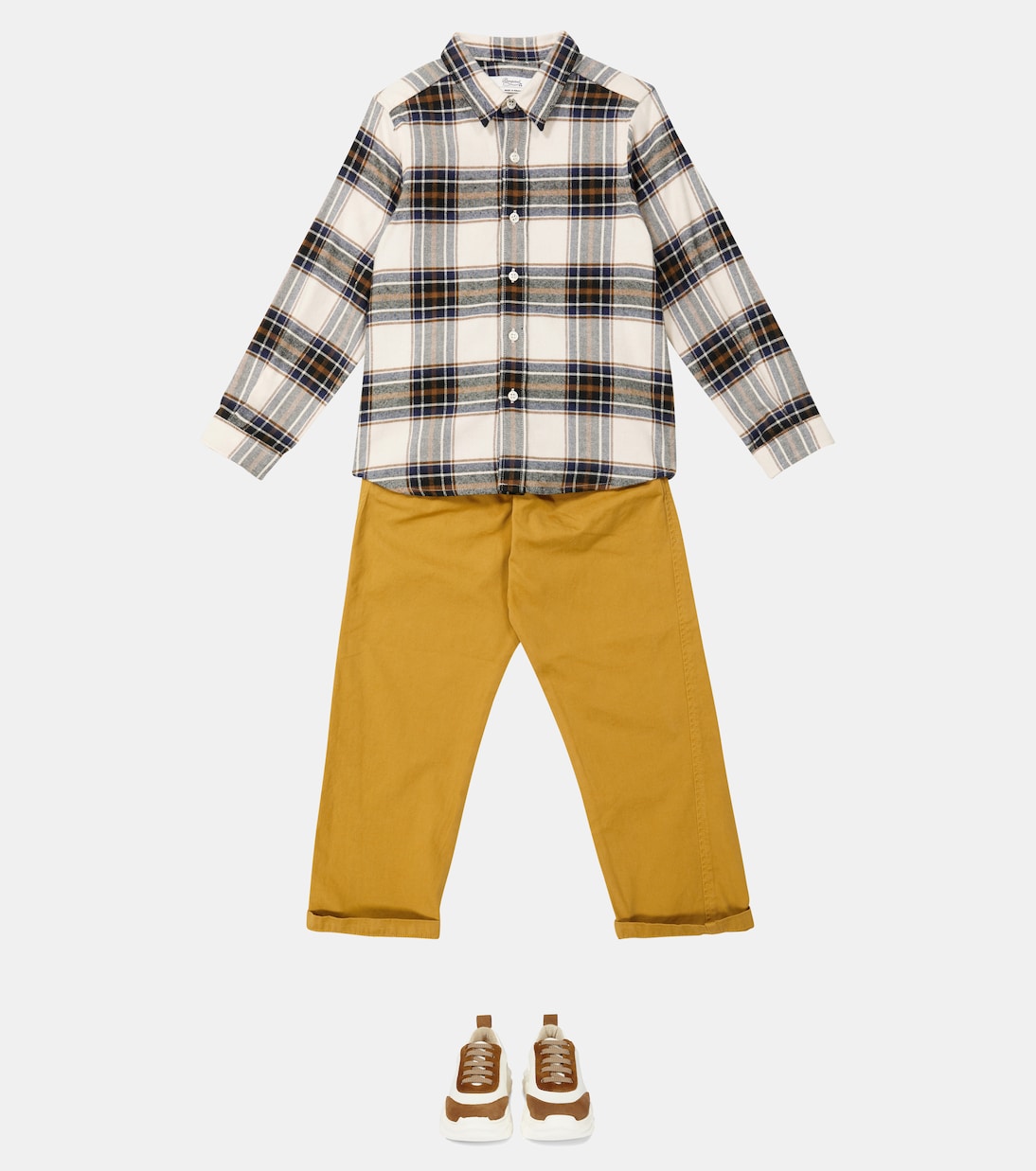 Эти брюки от Caramel скроены из хлопковой саржи горчично-желтого цвета и оснащены поясом на завязках.