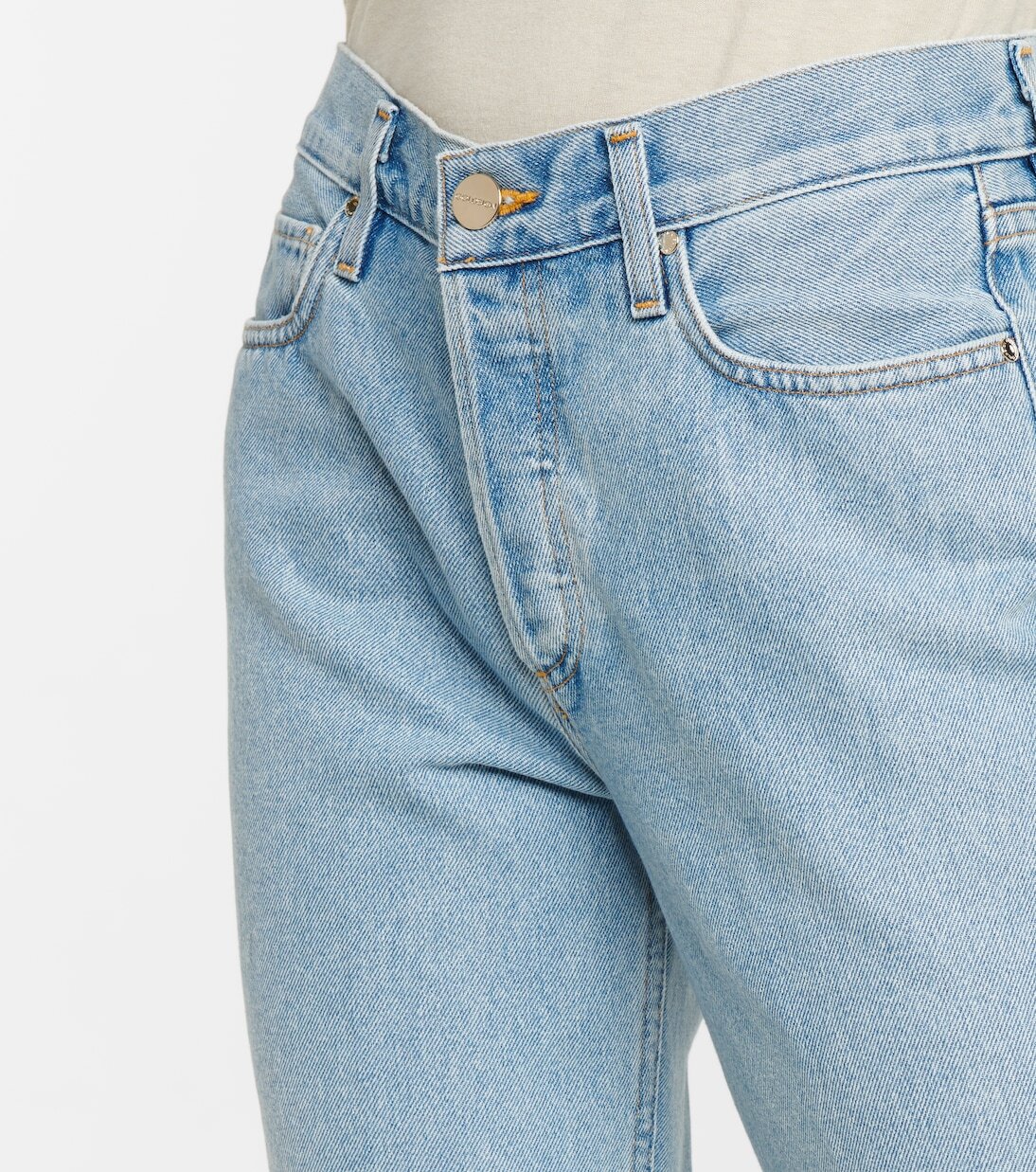 Эти джинсы с метким названием Девяностые от Goldsign воплощают настроение той эпохи. Сделано в США из синего хлопкового денима. Высокая посадка и узкие брюки с заутюженными складками слегка расширяются к низу колен.