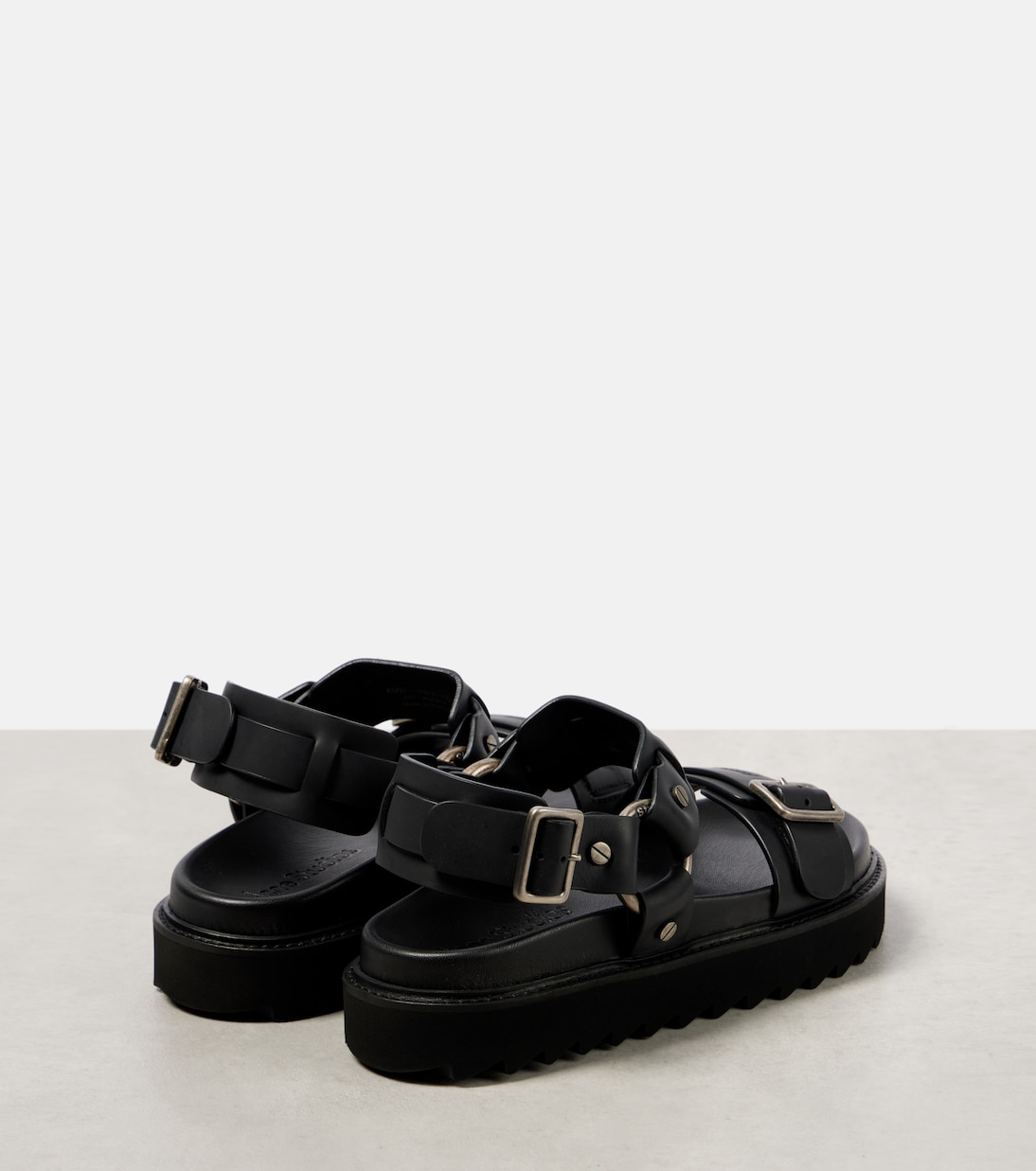Эти кожаные сандалии, вдохновленные скандинавской эстетикой Acne Studios, имеют подошву на платформе, отделку заклепками и серебристую фурнитуру. Тисненый логотип добавляет фирменный штрих, делая их современным, но в то же время простым предметом гардероба.