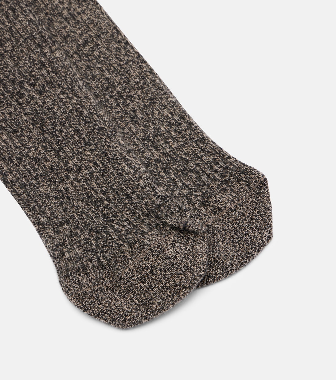 Эти колготки от Max Mara станут идеальной основой для множества образов. Они сшиты из тонкого трикотажа из смеси кашемира и шерсти и украшены изящным меланжевым узором по всей поверхности.
