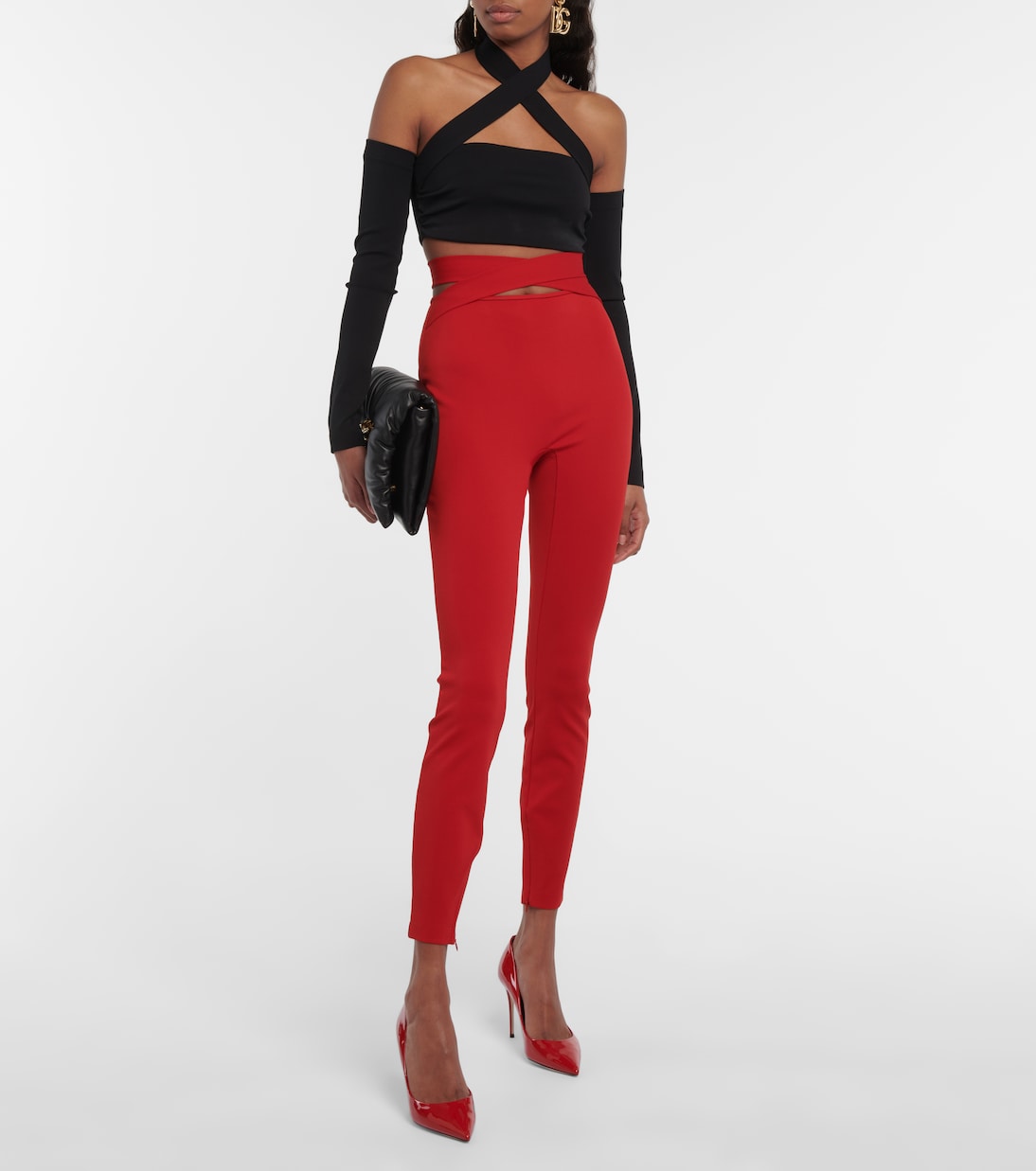Эти леггинсы от Dolce&Gabbana, которые обязательно нужно носить в спортивном стиле, отличаются перекрещивающимися полосками на высокой линии талии. Сочетайте эту вещь с подходящим топом.