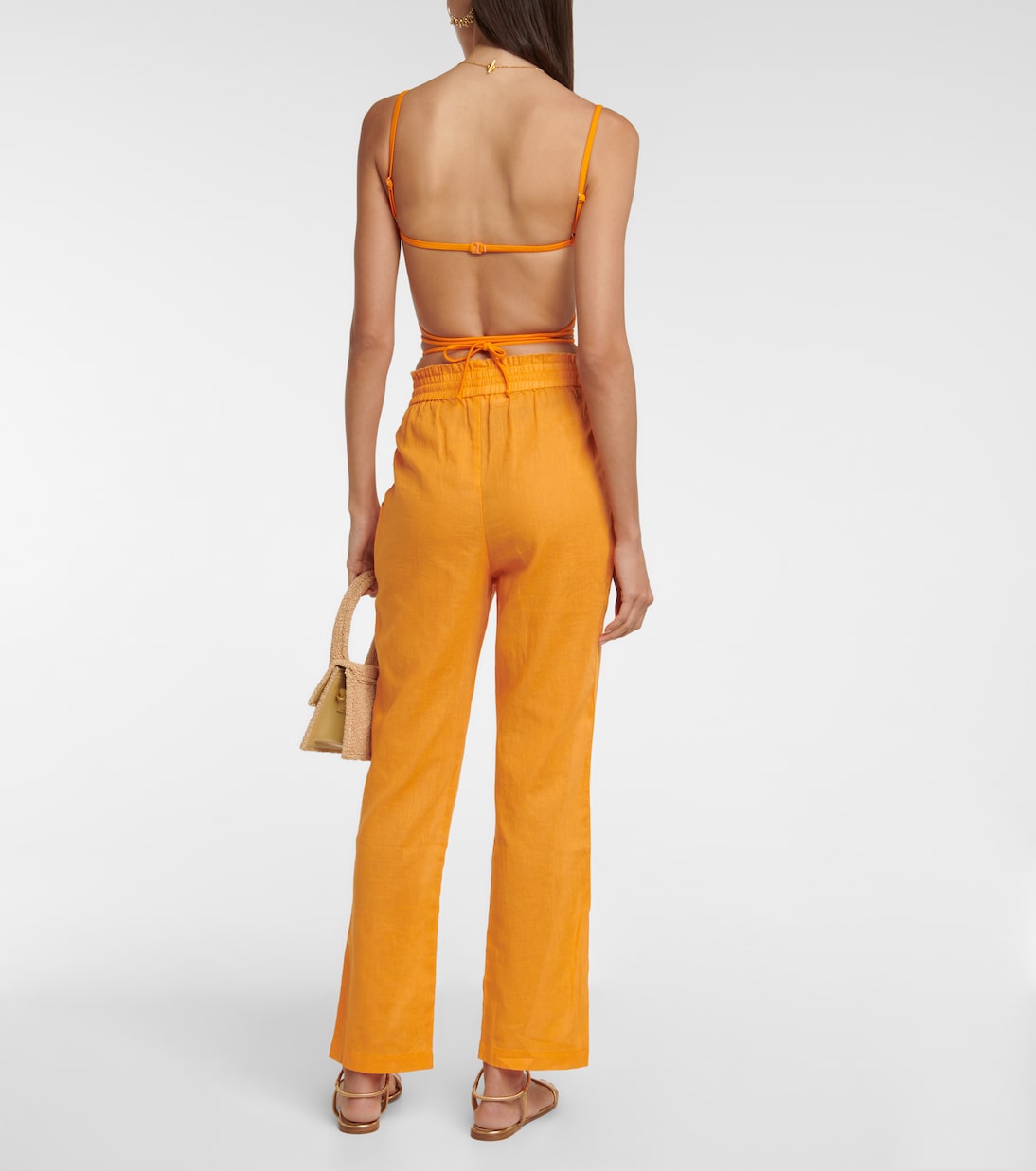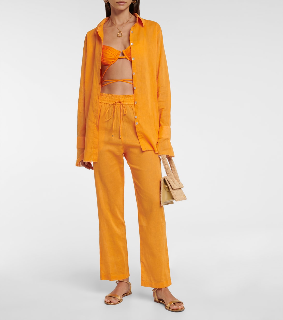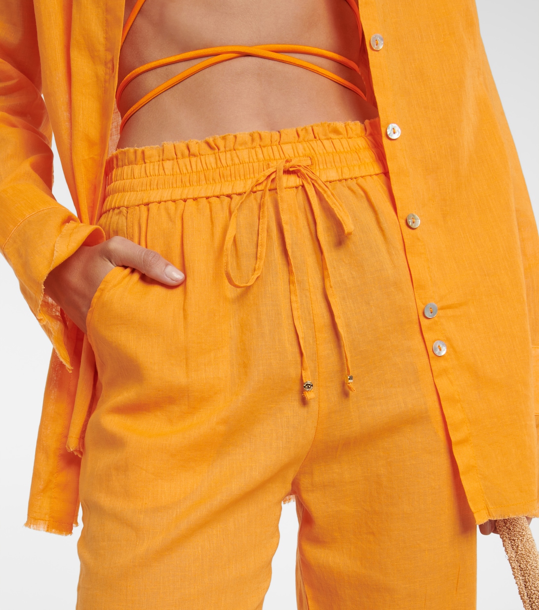 Эти легкие брюки от Bananhot сшиты из чистого льна. Свободная посадка и присборенный пояс на шнурке.