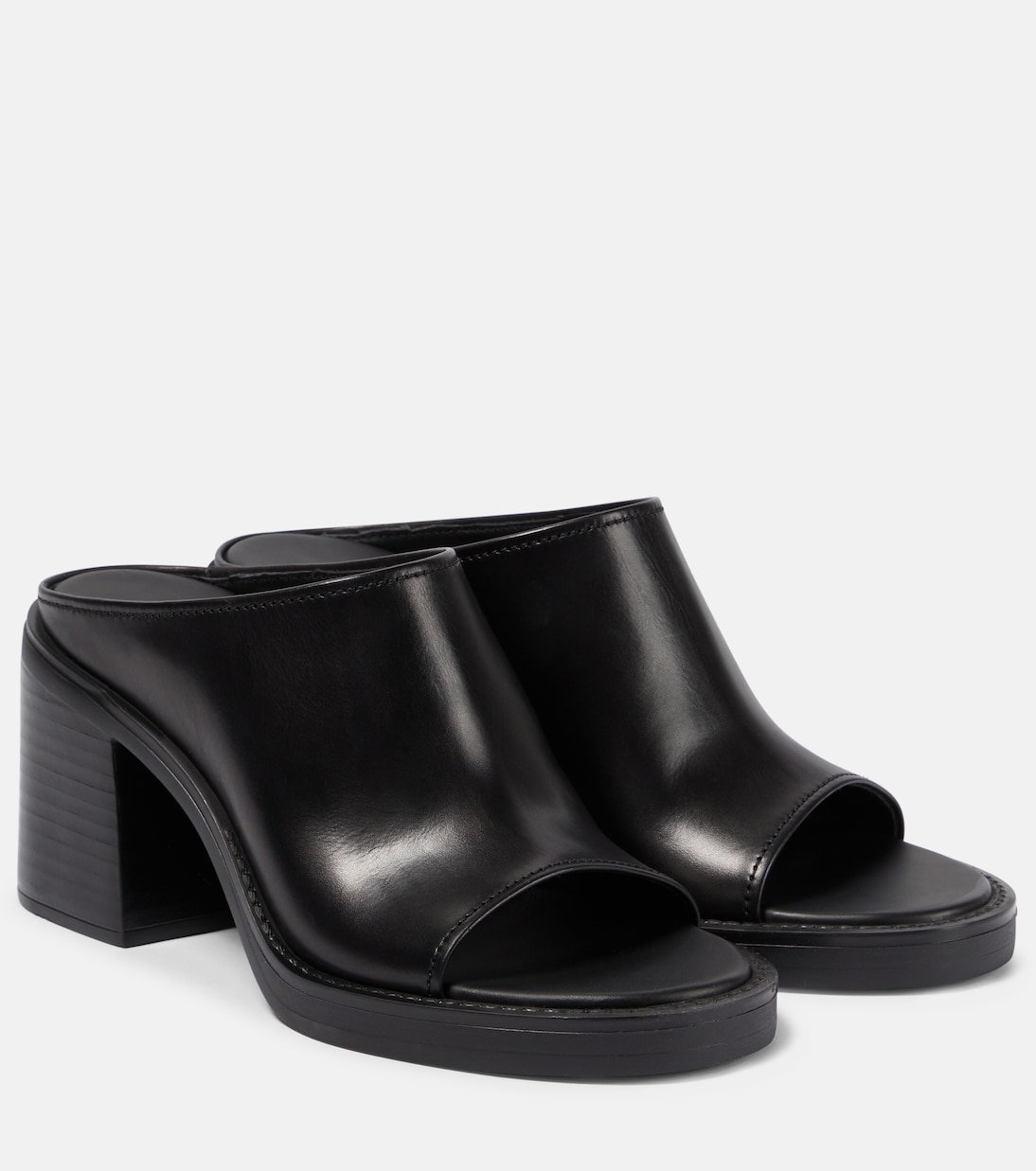 Эти мюли от Miu Miu имеют открытый носок из кожи и прочный каблук средней высоты.
