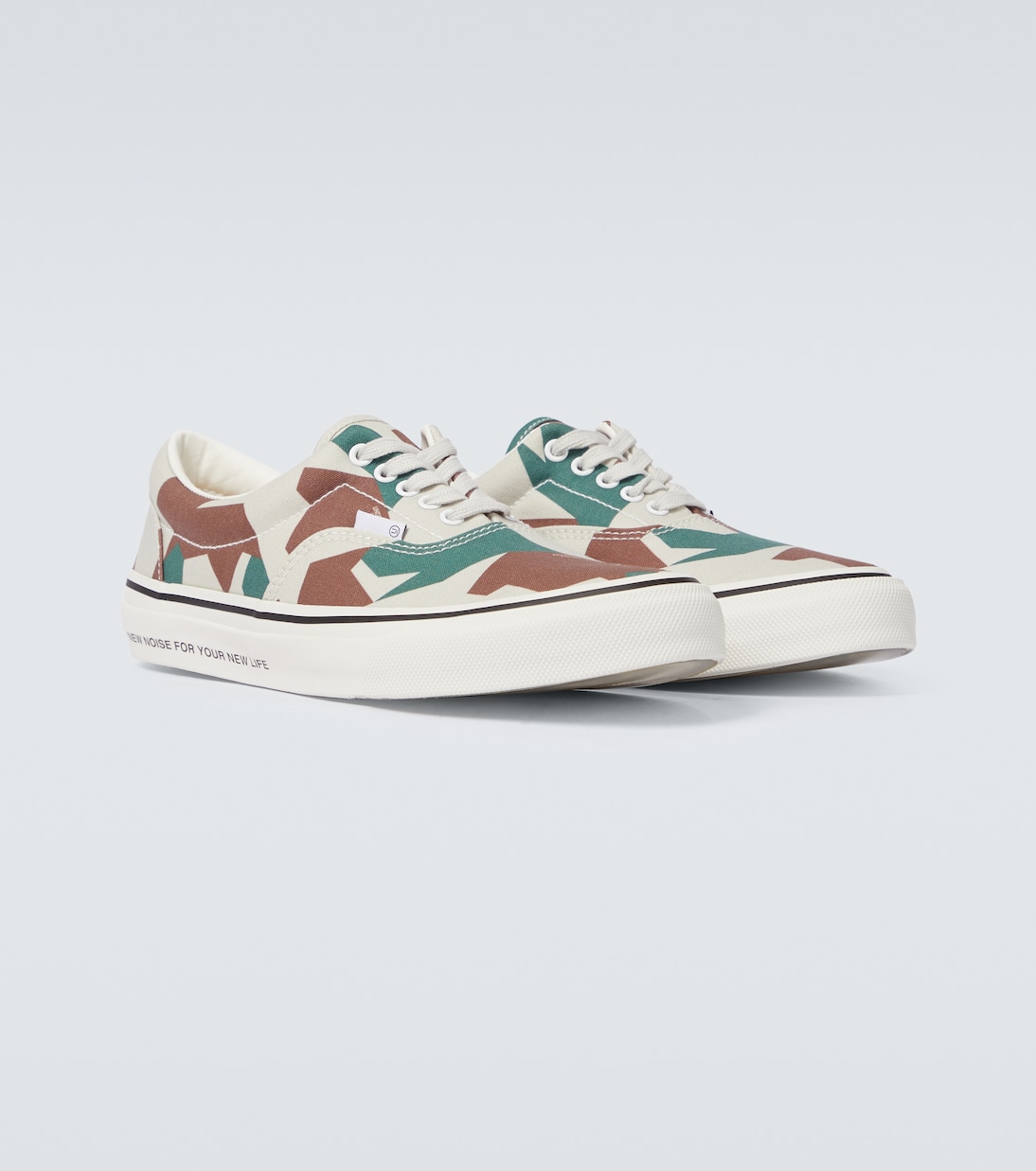 Эти низкие кроссовки от UNDERCOVER изготовлены из бежевого парусинового верха и резиновой подошвы и имеют сплошной абстрактный камуфляжный принт, который подчеркивает эстетику бренда, вдохновленную милитари.