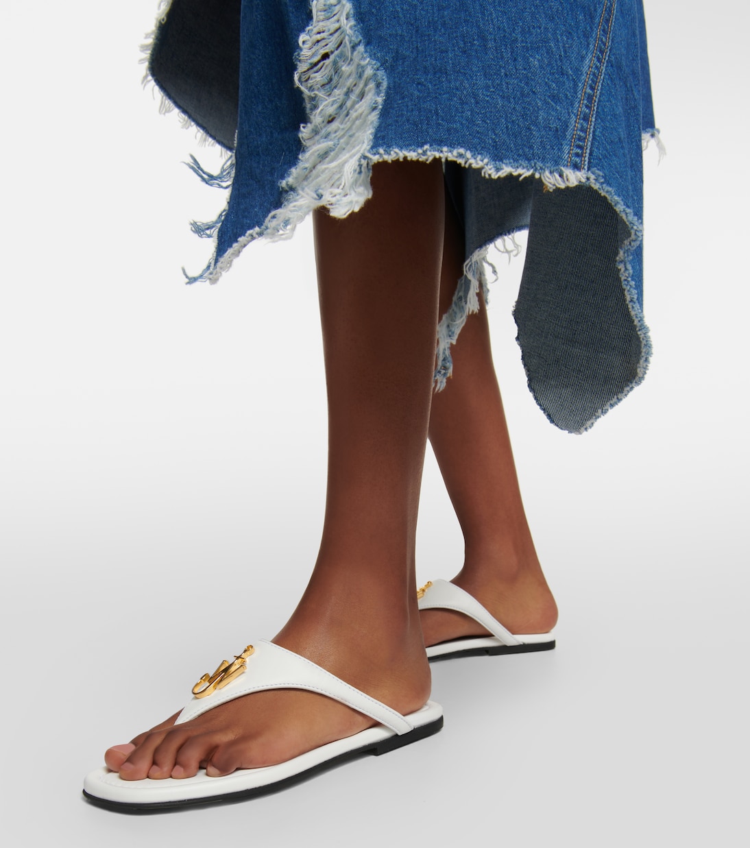 Эти сандалии-шлепки с квадратным носком от JW Anderson изготовлены в Италии из гладкой белой кожи. Верх украшен фирменным логотипом Anchor блестящего золотистого оттенка.