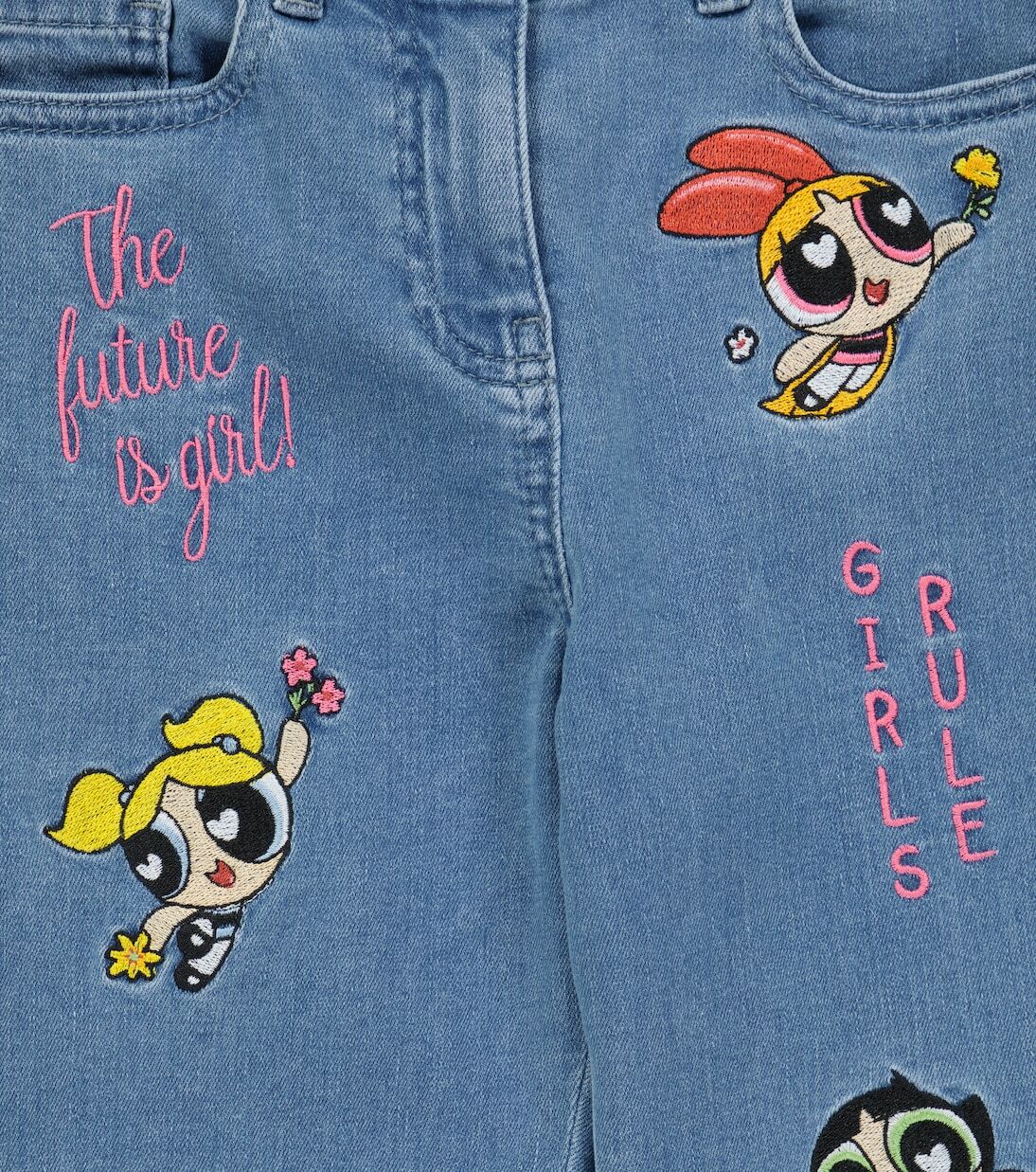 Эти синие джинсы от Monnalisa, выполненные с добавлением эластичной ткани для дополнительного комфорта, имеют облегающий силуэт и украшены очаровательной вышивкой.