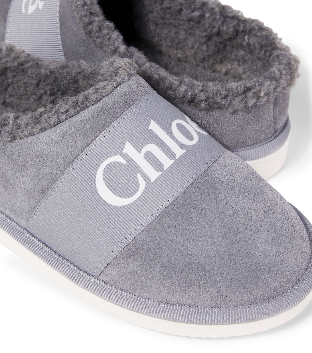 Эти тапочки Chloé Kids с подкладкой из мягкого флиса с изображением плюшевого мишки изготовлены из эластичной замши и украшены логотипом бренда. Разработанные, чтобы держать маленькие ножки в уюте и стиле, это идеальная пара для уютных, холодных дней.
