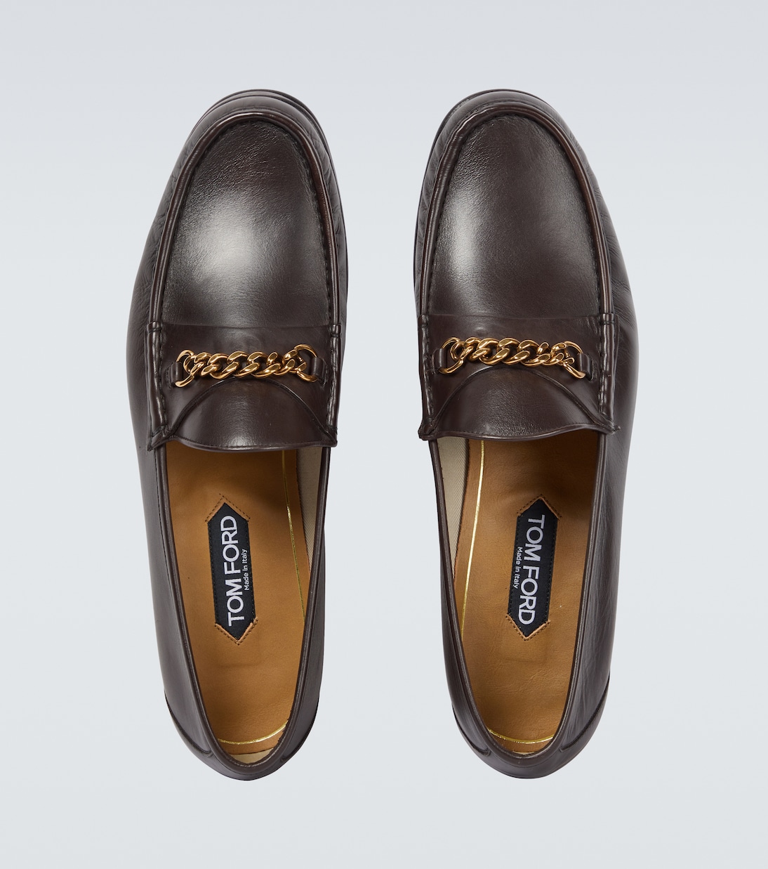 Эти темно-коричневые кожаные лоферы от Tom Ford, входящие в эксклюзивную капсульную коллекцию для мужчин Mytheresa, - элегантный предмет гардероба, дополненный ремешками в стиле пенни-лоферов и золотистой цепочкой по верху.