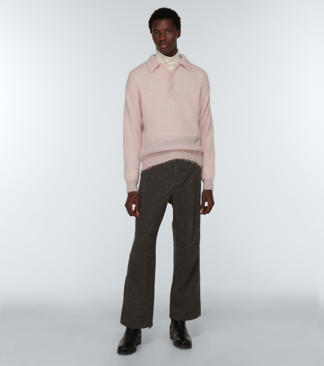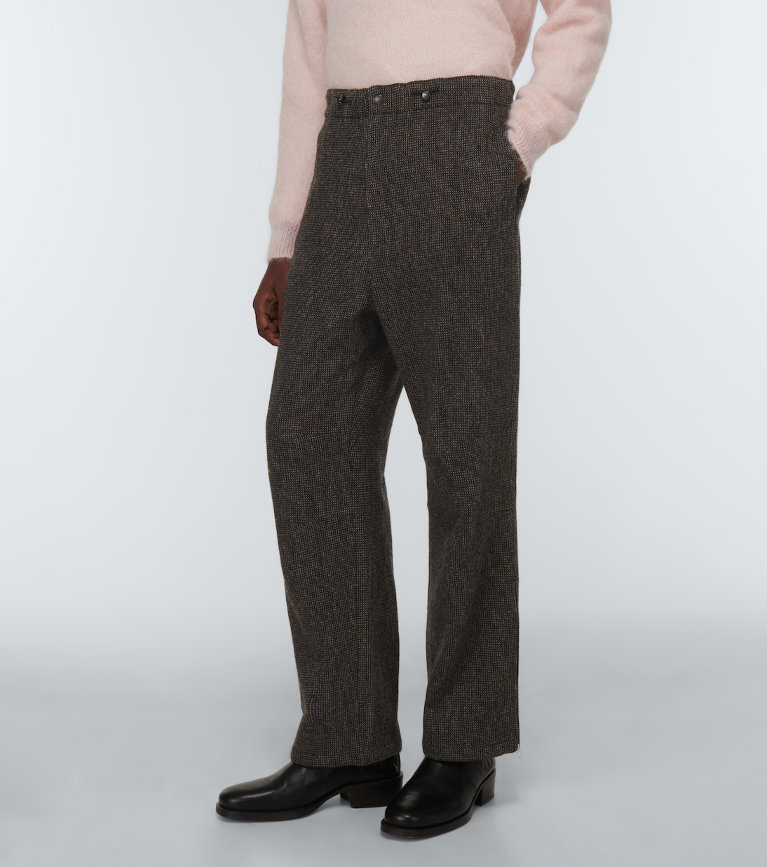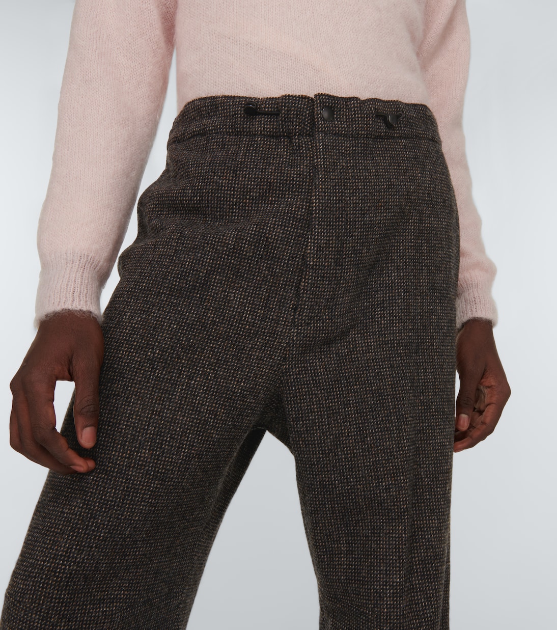 Эти функциональные, но модные шерстяные брюки от Auralee затягиваются на поясе с помощью современной кулиски.