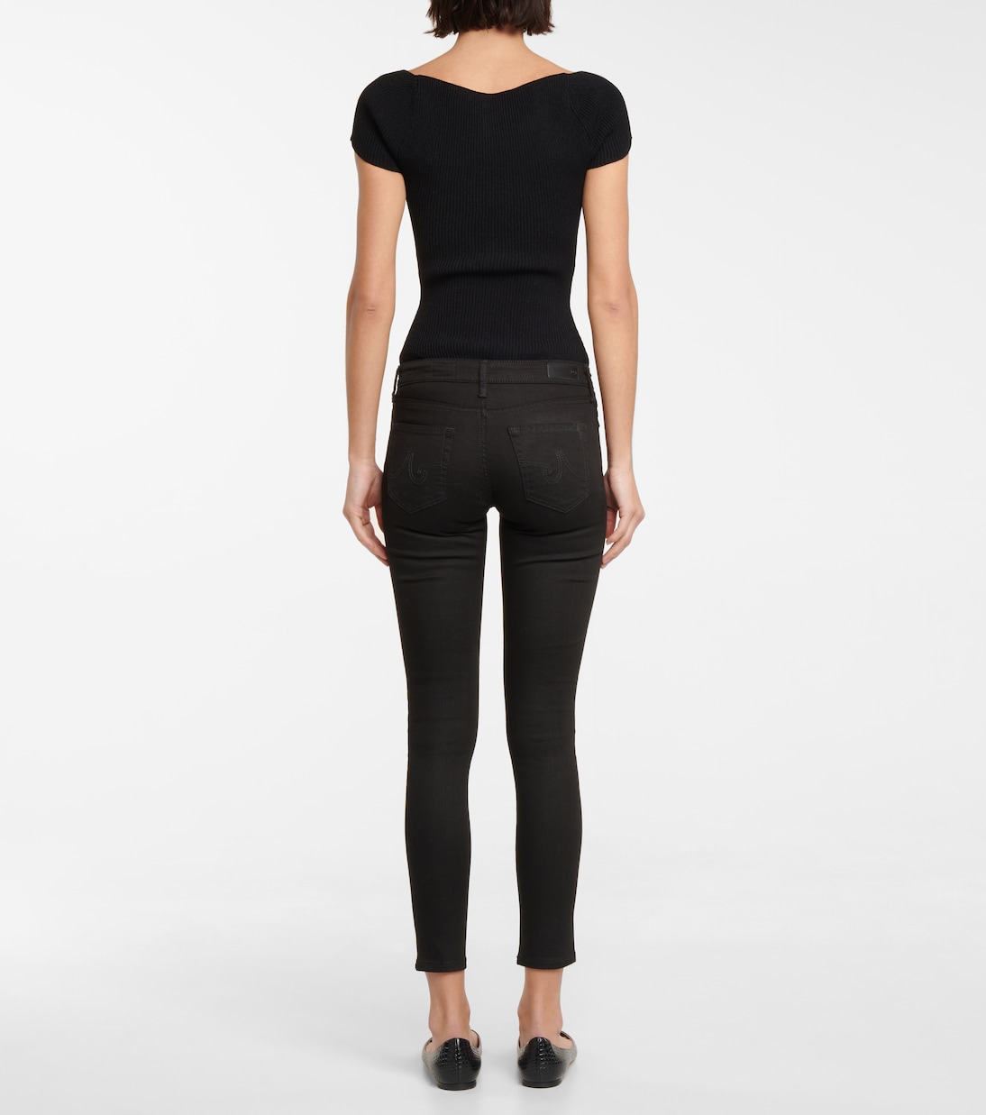 Эти черные джинсы The Legging Ankle от AG Jeans получили свое название благодаря суперузкому крою. Изготовленная из джинсовой ткани с эффектом винтажной стирки, эта пара, подчеркивающая фигуру, имеет среднюю посадку и укороченную длину, идеально подходящую для ношения выше ботинок.
