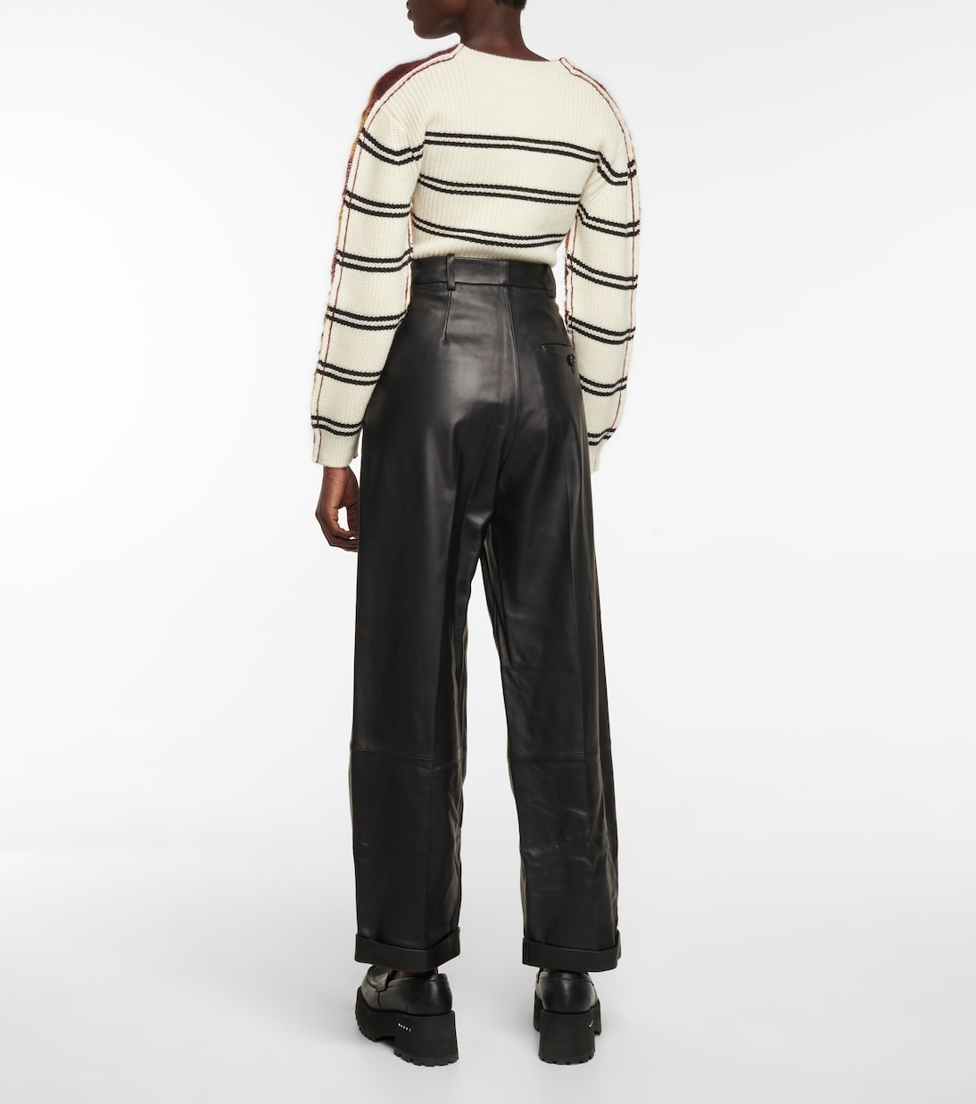 Эти черные кожаные брюки от Marni станут незаменимым дополнением к тщательно подобранному гардеробу. Сделано в Италии из мягкой овчины с частичной подкладкой, они имеют высокую талию, плиссированный перед и зауженные штанины.