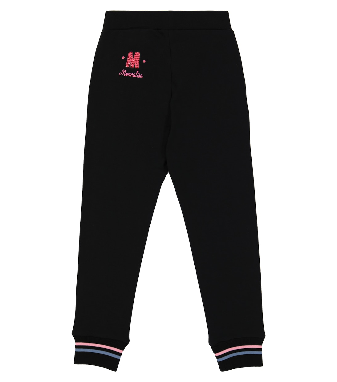 Эти черные спортивные брюки Monnalisa из эластичного хлопкового трикотажа имеют эластичный пояс и ребристые манжеты.
