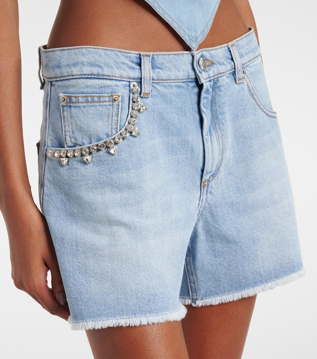 Эти шорты от Area, выполненные из мягкого денима, имеют среднюю посадку на талии и прямой крой штанин. Дизайн отличается ноткой гламура с правым карманом, украшенным кристаллами, и культовым швом в виде сердца бренда сзади.