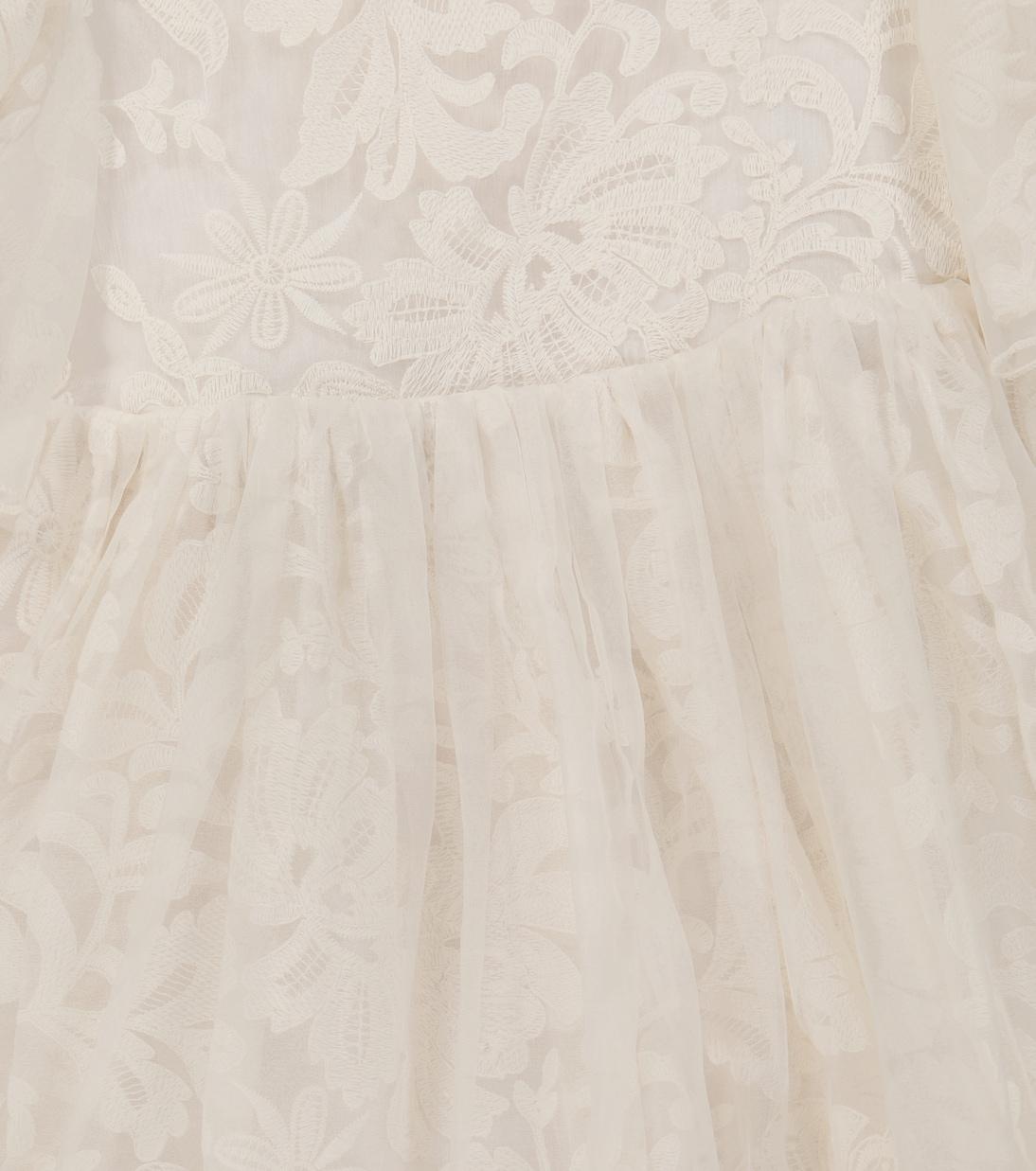 Это белое платье от Paade Mode выполнено из панелей хлопка и тюля с добавлением шелка. Платье украшено цветочной вышивкой, имеет круглый вырез горловины, молнию сзади и пышную юбку.