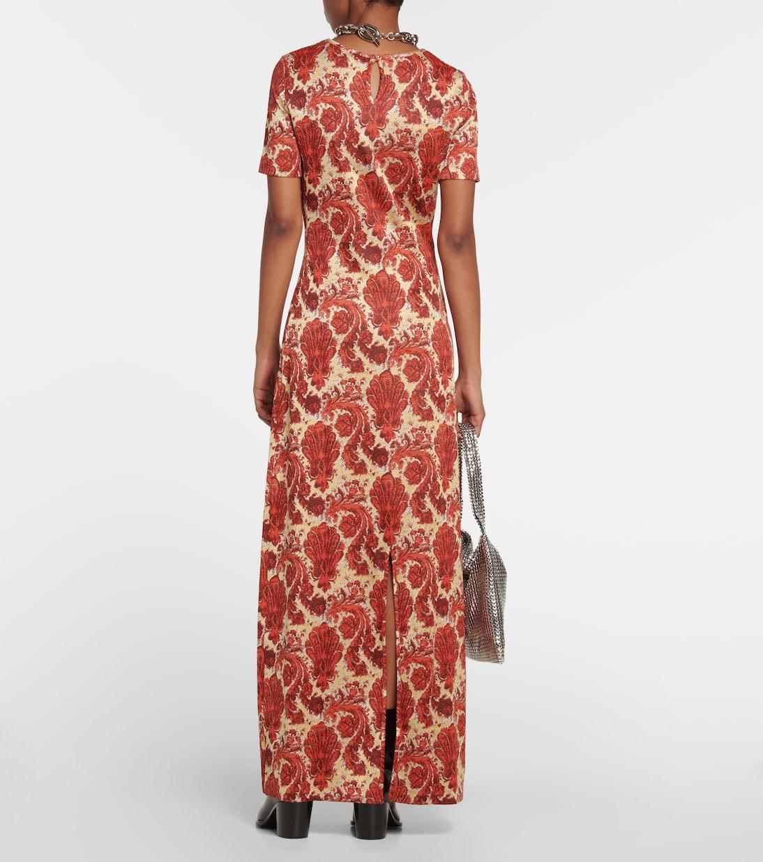 Это макси-платье от Paco Rabanne - идеальный вариант для отпуска. Оно имеет короткий рукав с принтом и разрез до колена сзади.