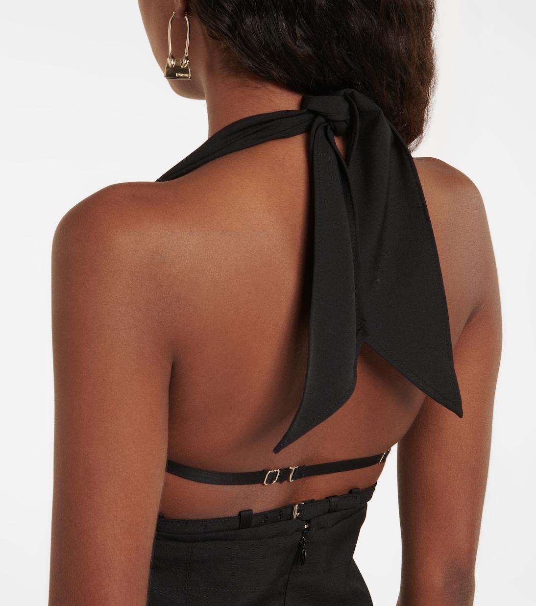 Это маленькое черное платье - типичный чувственный стиль от любимца соцсетей Jacquemus. Эта модель мини-длины под названием La Robe Limao выполнена из шерсти с привлекательными вырезами.