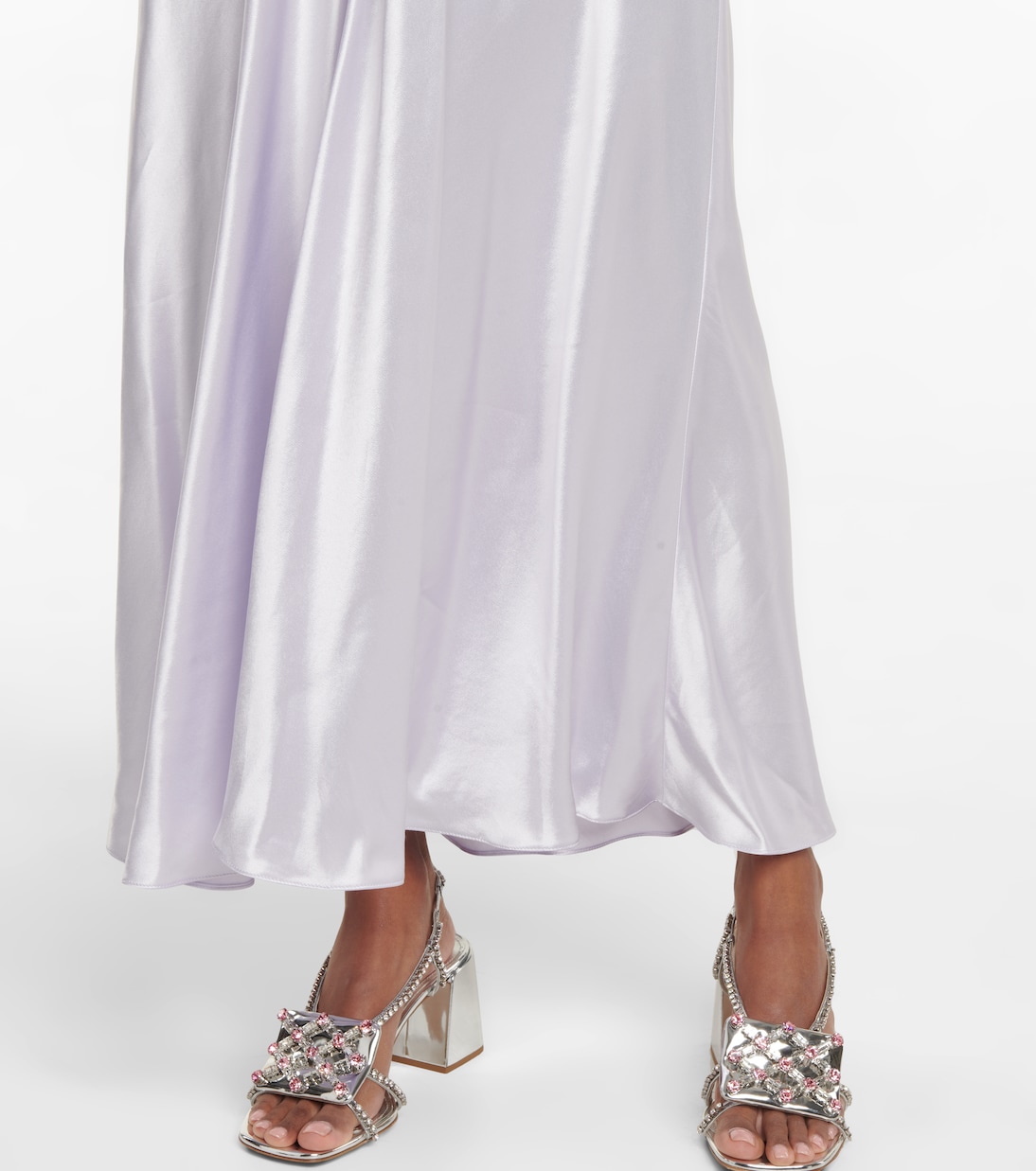 Это миди-платье от Miu Miu доказывает, что простой дизайн может иметь непревзойденный эффект. Платье-комбинация выполнено из облегающего атласа с очень тонкими бретельками и застегивается на едва заметную молнию сбоку.