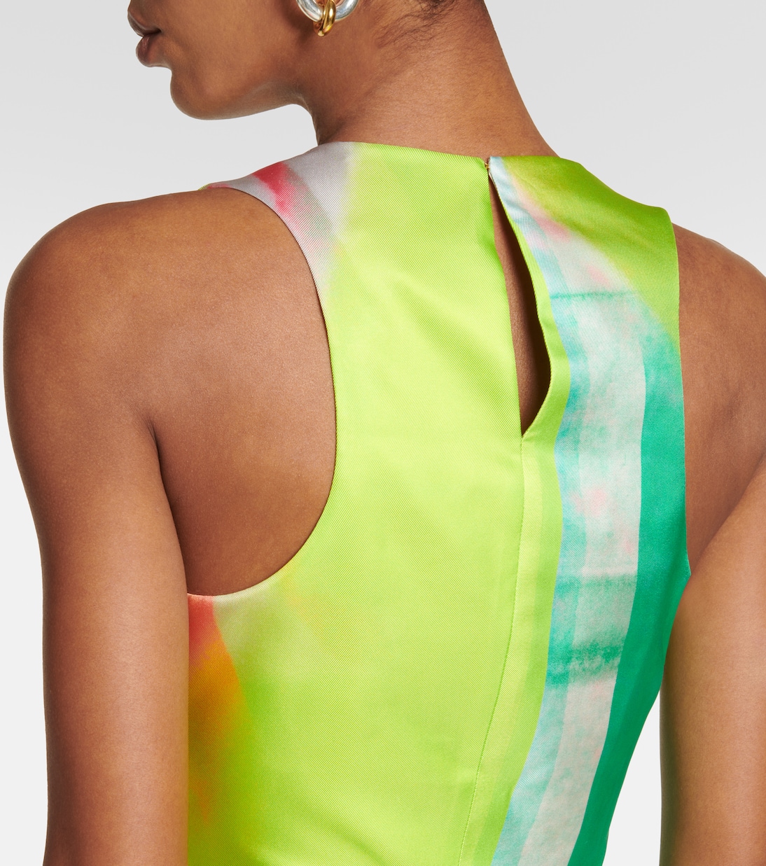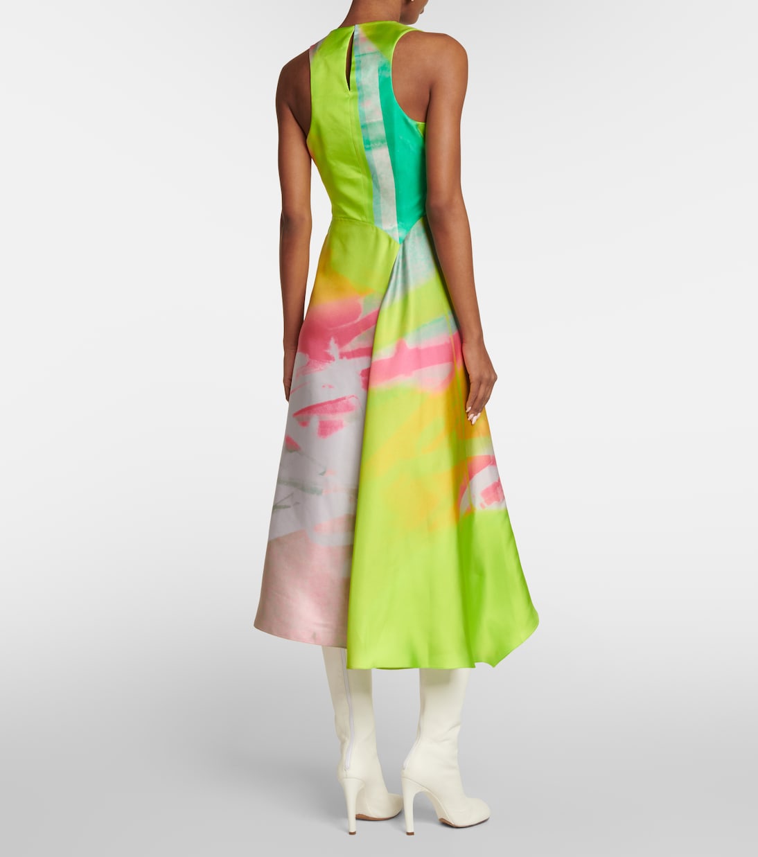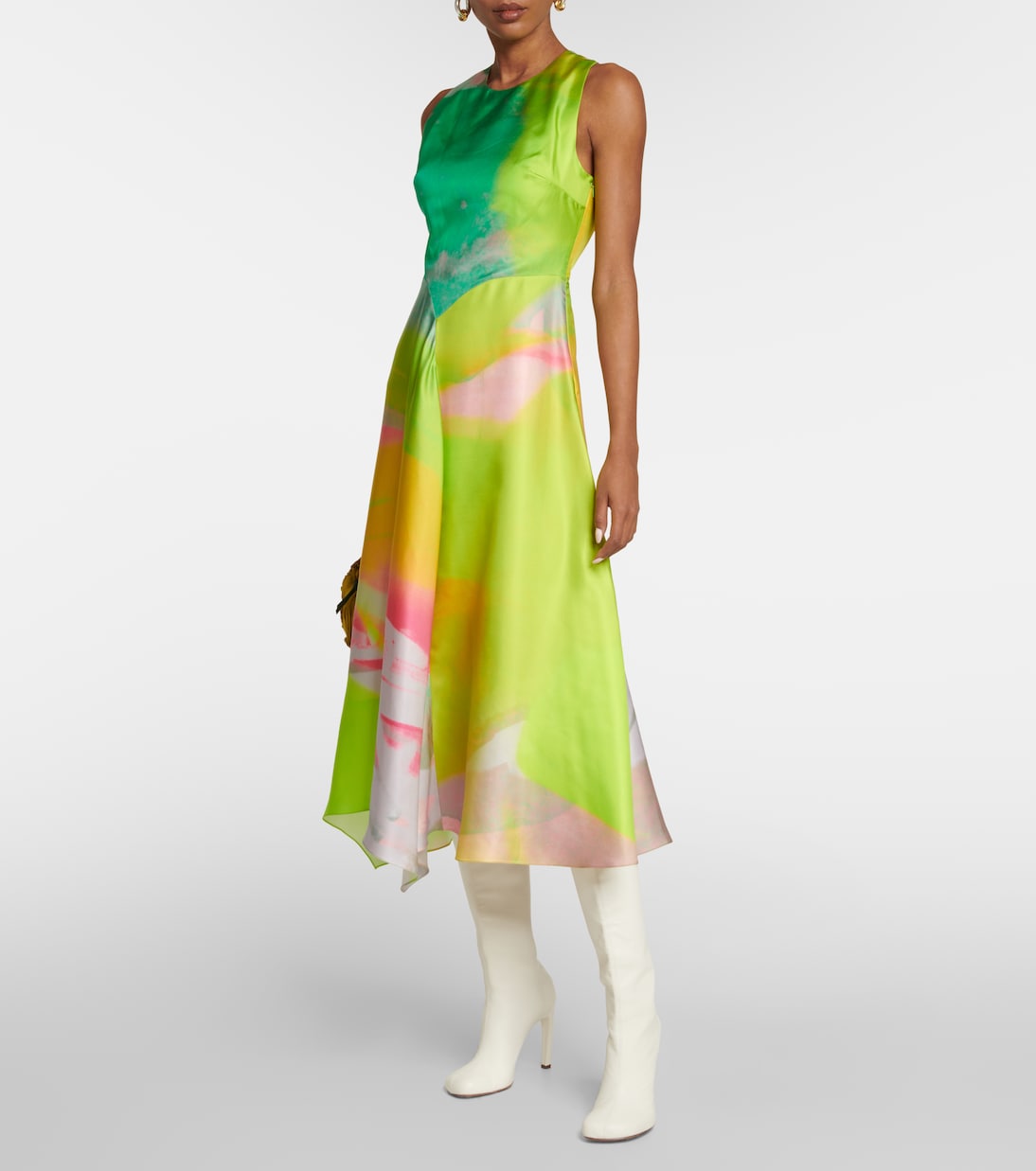 Это миди-платье от Roksanda - яркий пример современного дизайна в его самой элегантной форме. Изделие полностью выполнено из шелка и украшено разноцветным принтом, имеет асимметричную линию талии и подола.