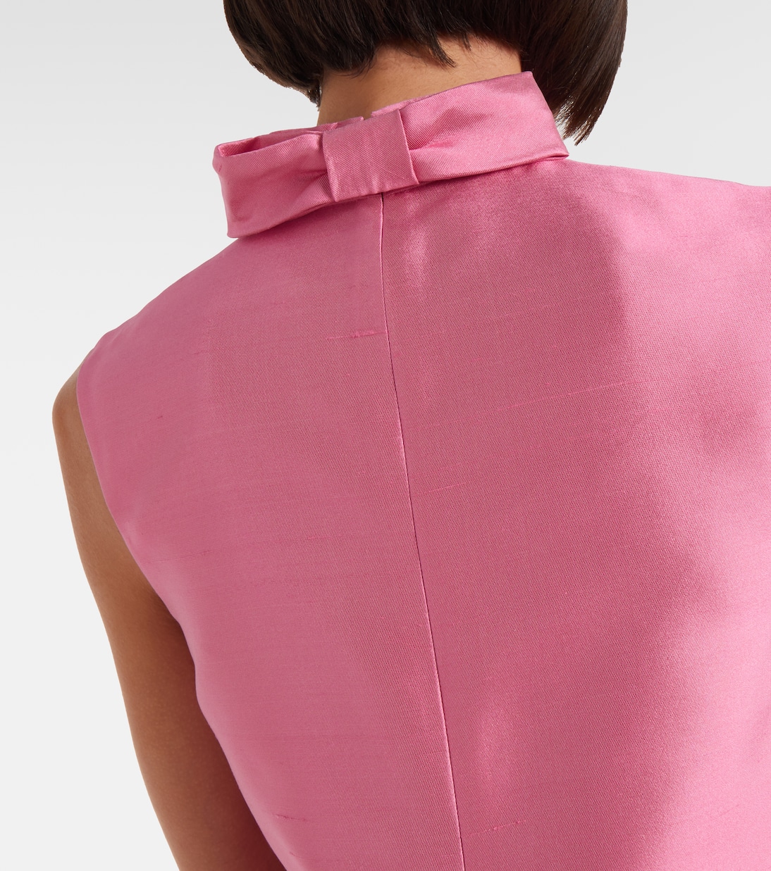 Это мини-платье Valentino станет идеальным дополнением к вашему летнему гардеробу: оно полностью изготовлено из тонкого шелкового шантунга освежающего арбузно-розового оттенка.