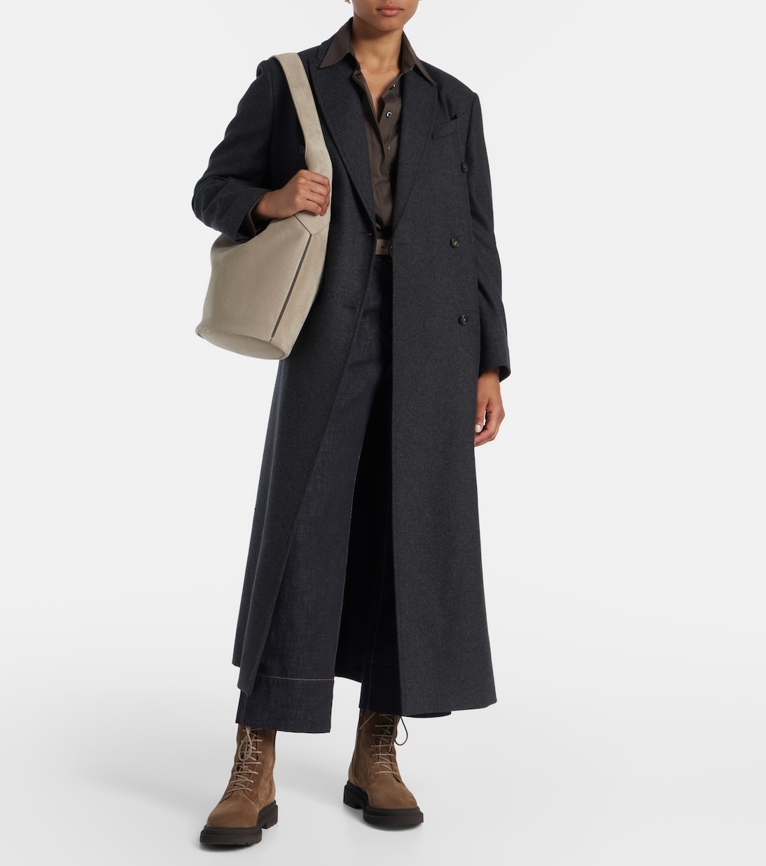 Это пальто от Brunello Cucinelli, изготовленное в Италии из шерсти, станет воплощением изысканной элегантности в холодные месяцы. Двубортный фасон, подбитые плечи и вырез горловины создают изысканный образ.