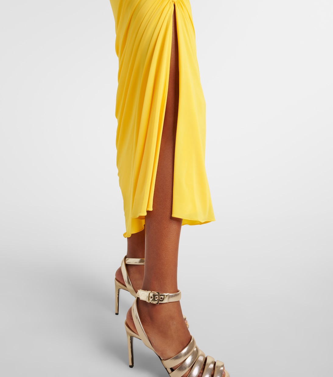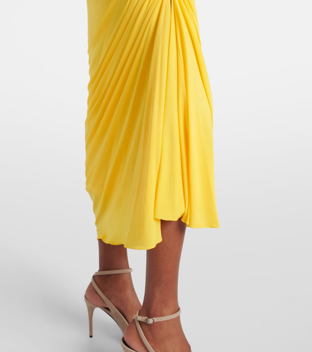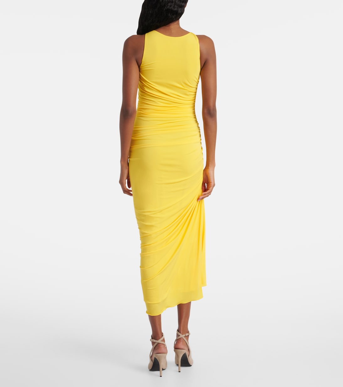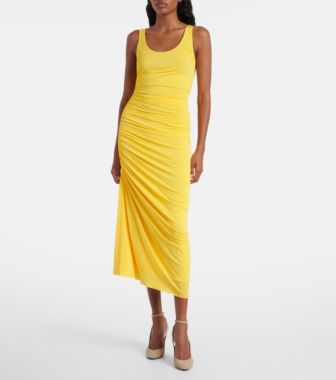 Это платье миди Alaïa, изготовленное в Италии из мягкого джерси, станет смелым и соблазнительным заявлением. Изделие имеет асимметричный крой без рукавов и дополнено сборкой сбоку, которая подчеркивается регулируемой лентой.