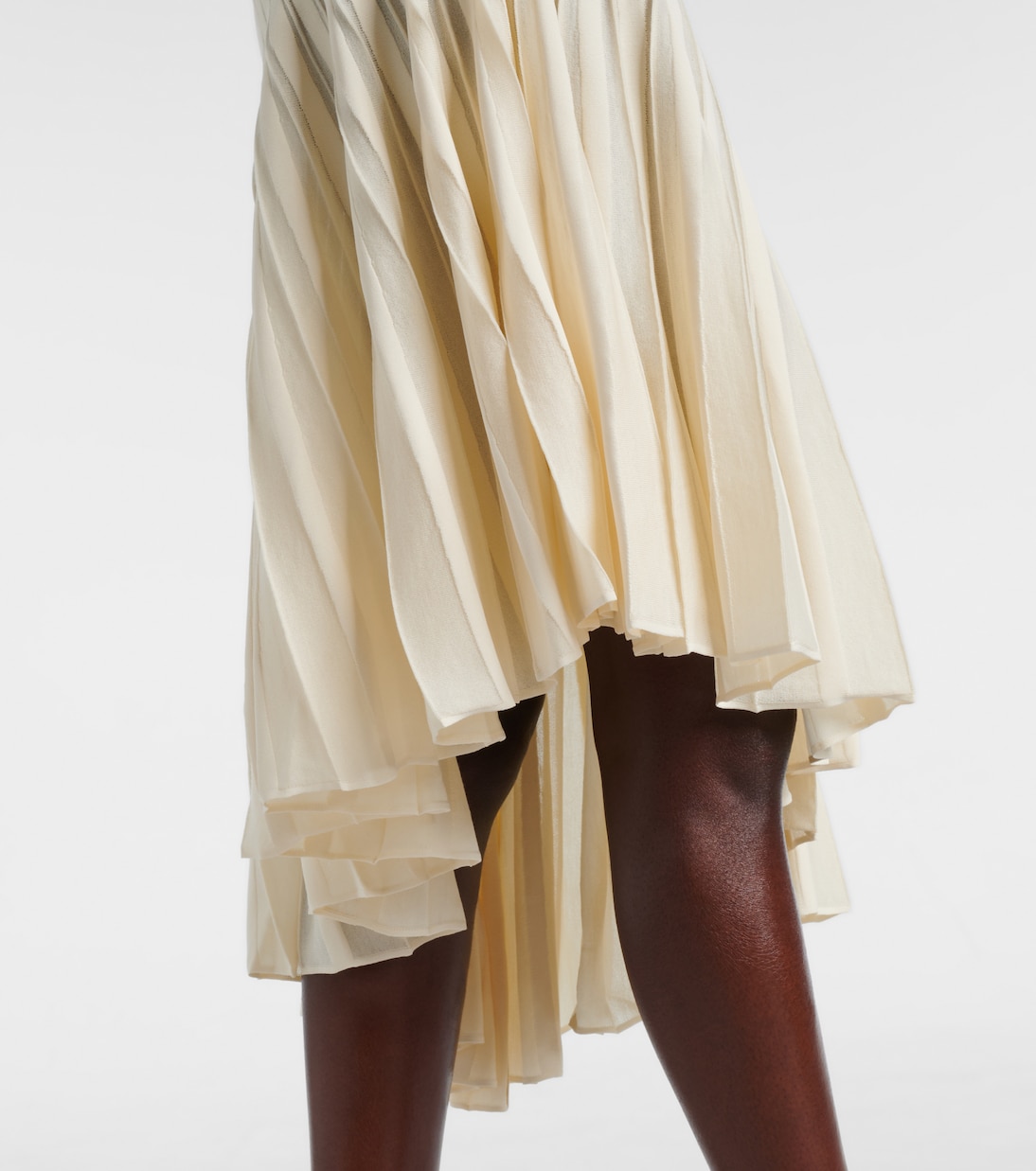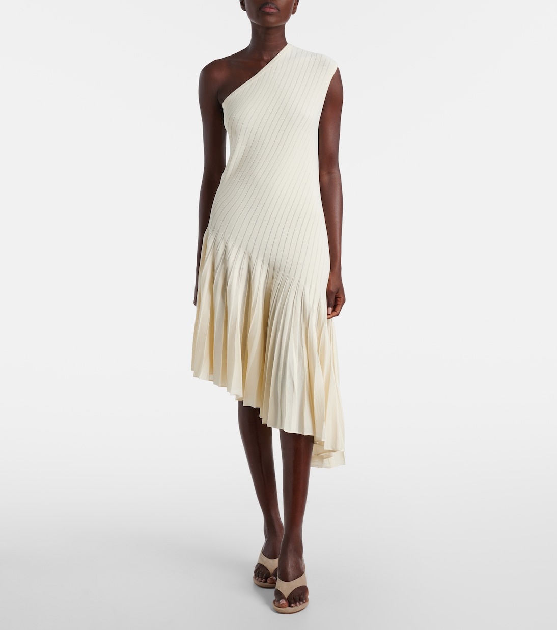 Это платье миди Alaïa, изготовленное в Италии из фигурного крепа, излучает непринужденную изысканность. Асимметричный силуэт на одно плечо и плиссированная юбка делают его идеальным выбором для вечерних посиделок в теплую погоду или прогулок по берегу моря.