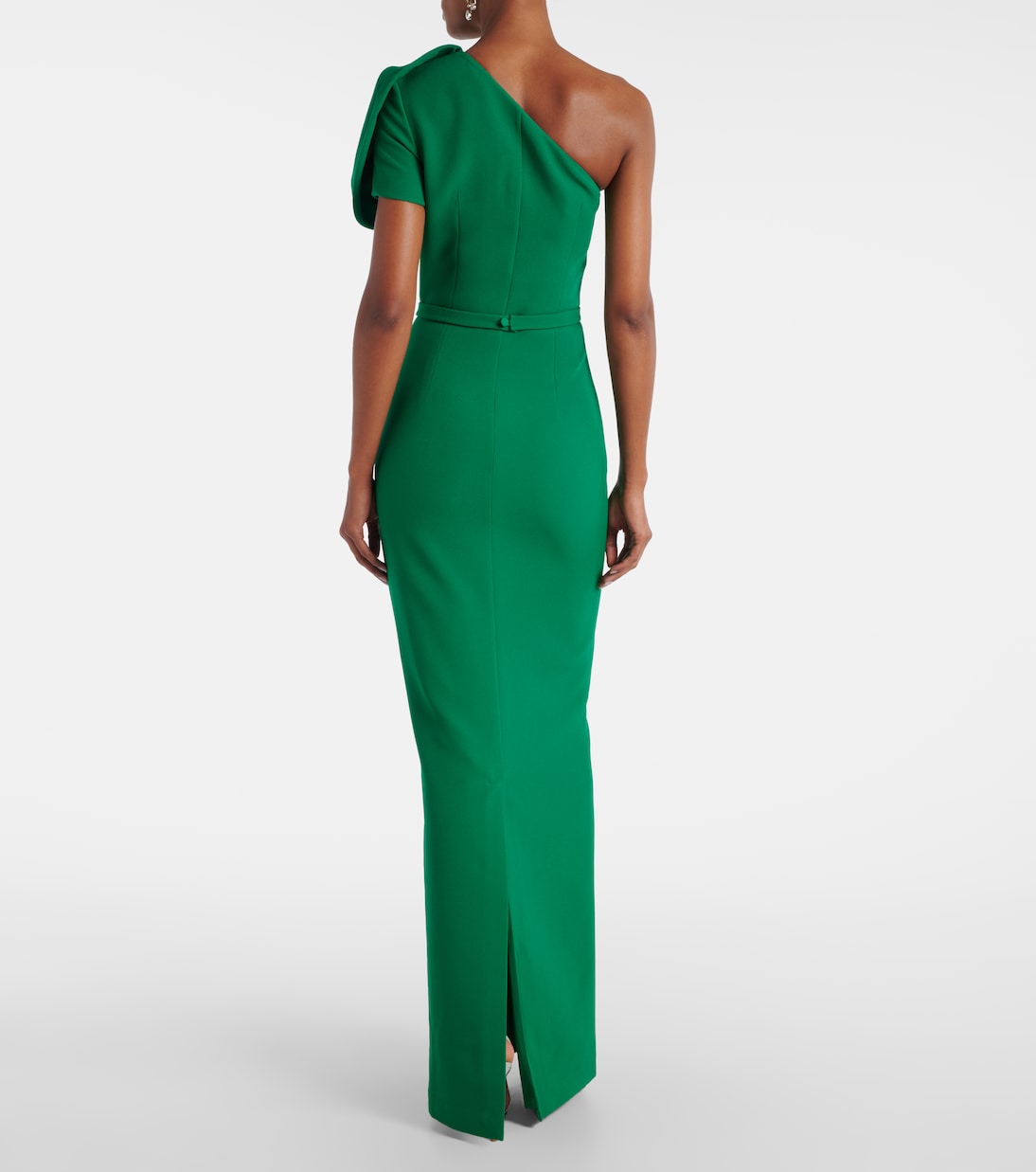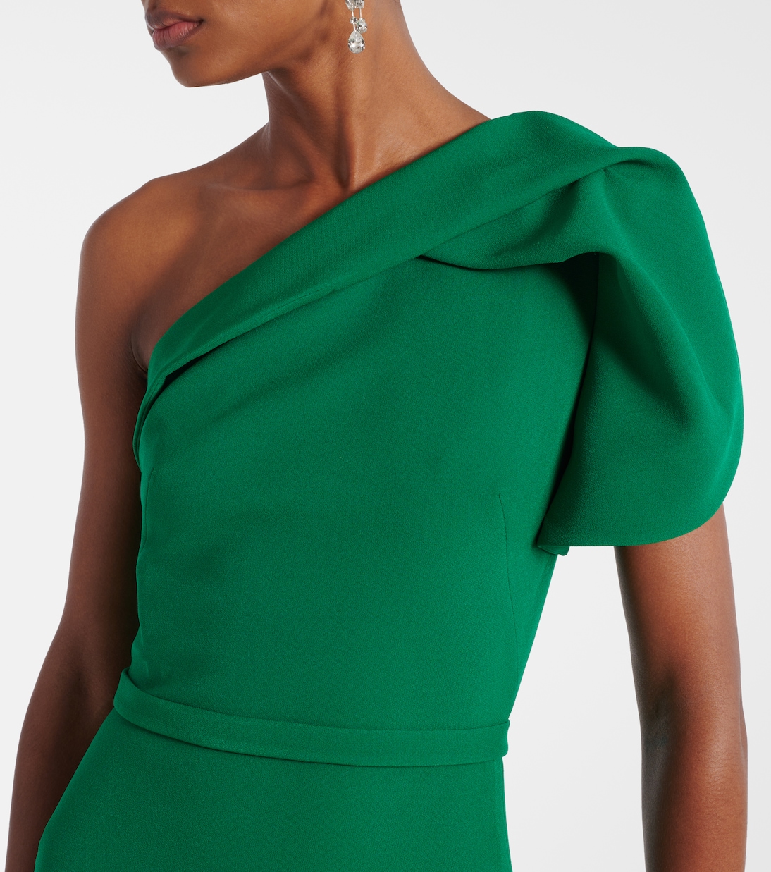Это платье на одно плечо сшито из фирменного плотного крепа Сафии - ткани, которая ценится за ее изящную драпировку. Приталенный силуэт и тонкий съемный пояс.