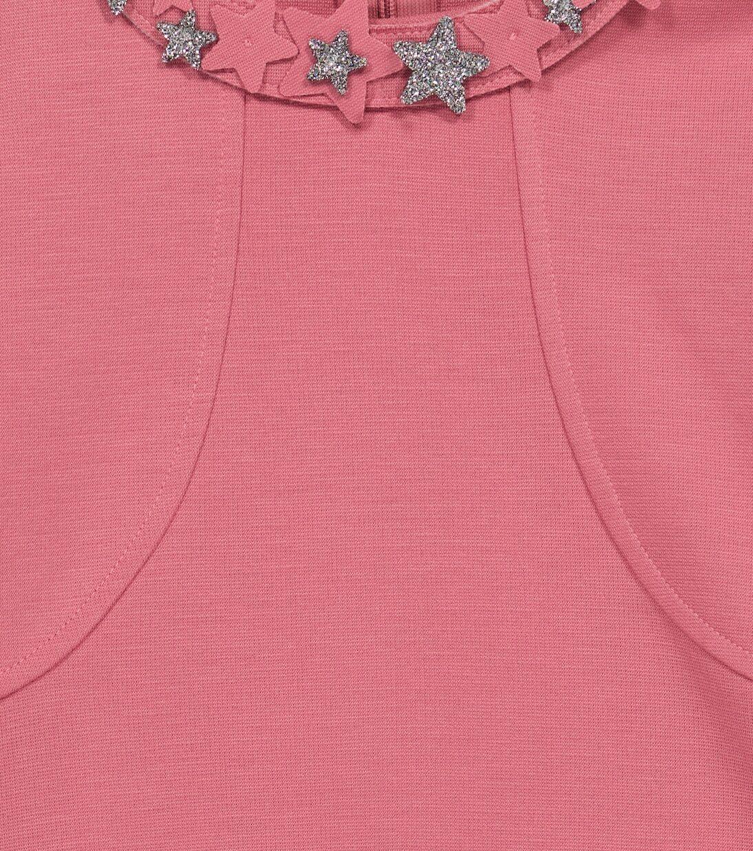 Это платье от Il Gufo идеально подходит для любого случая: прорезные карманы по бокам и легкий клеш, который так и манит кружиться. Платье украшено блестящими аппликациями в форме звезд на вырезе.