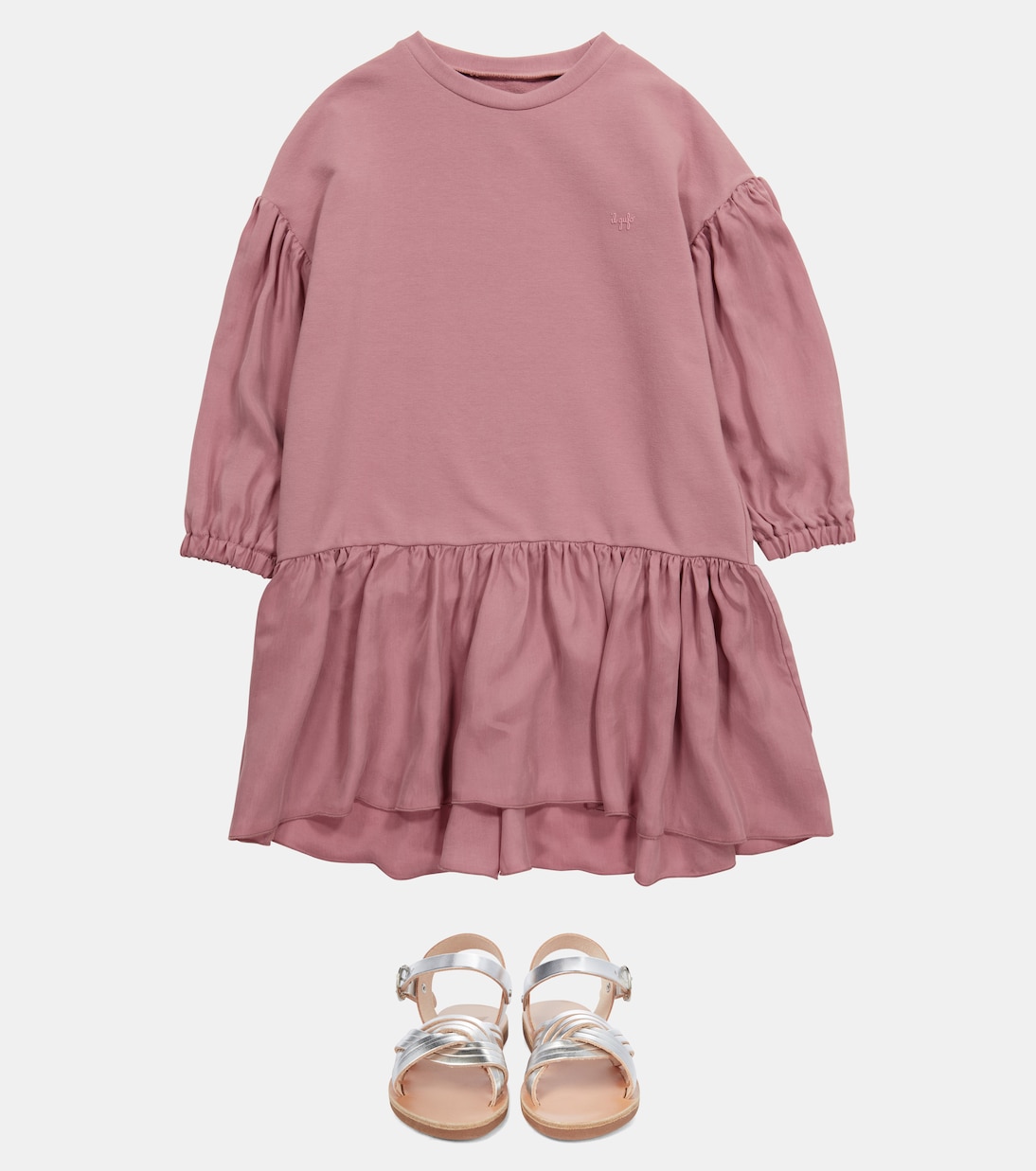 Это платье пыльно-розового цвета от Il Gufo сшито из мягкого хлопкового трикотажа стретч-стичем в стиле, который действительно придется по вкусу вашим куколкам: на рукавах и по подолу - воланы из блестящей купро. Напоминающий классические свитшоты дизайн имеет классический круглый вырез.
