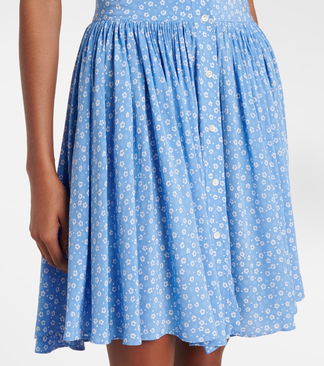 Это платье-рубашка от Polo Ralph Lauren, выполненное из легкого крепа, имеет вставную талию и присборенную юбку, что создает слегка расклешенный силуэт. Дизайн дополнен застежкой на пуговицы спереди и цветочным принтом по всей поверхности.