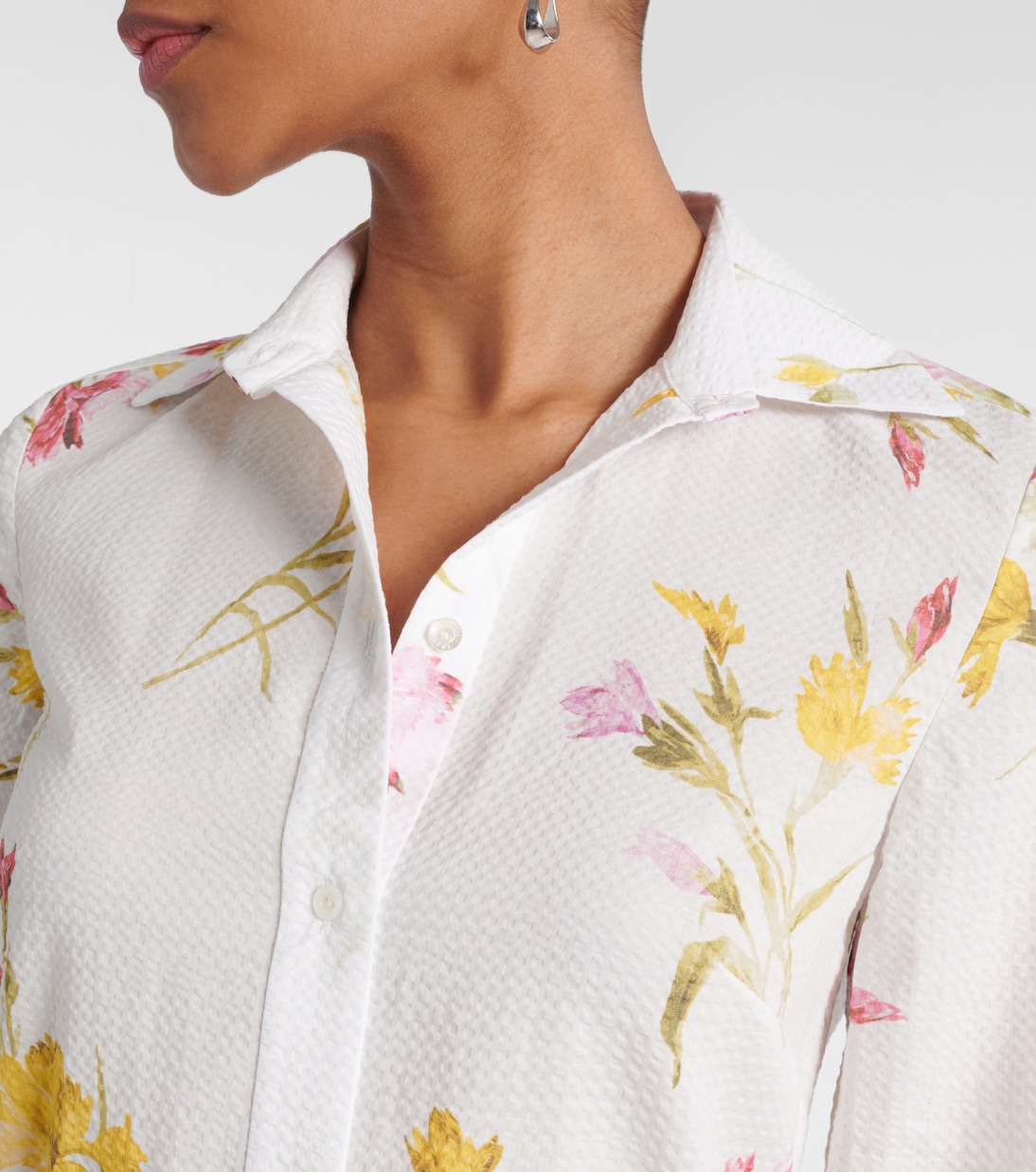 Это платье-рубашка с цветочным принтом от Erdem подойдет для теплого времени года благодаря легкому хлопковому сирсакеру. Свободный силуэт средней длины дополняется застежкой на пуговицы спереди, потайными карманами в боковых швах и поясом на талии для непринужденной элегантности.