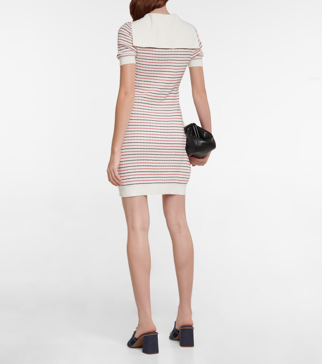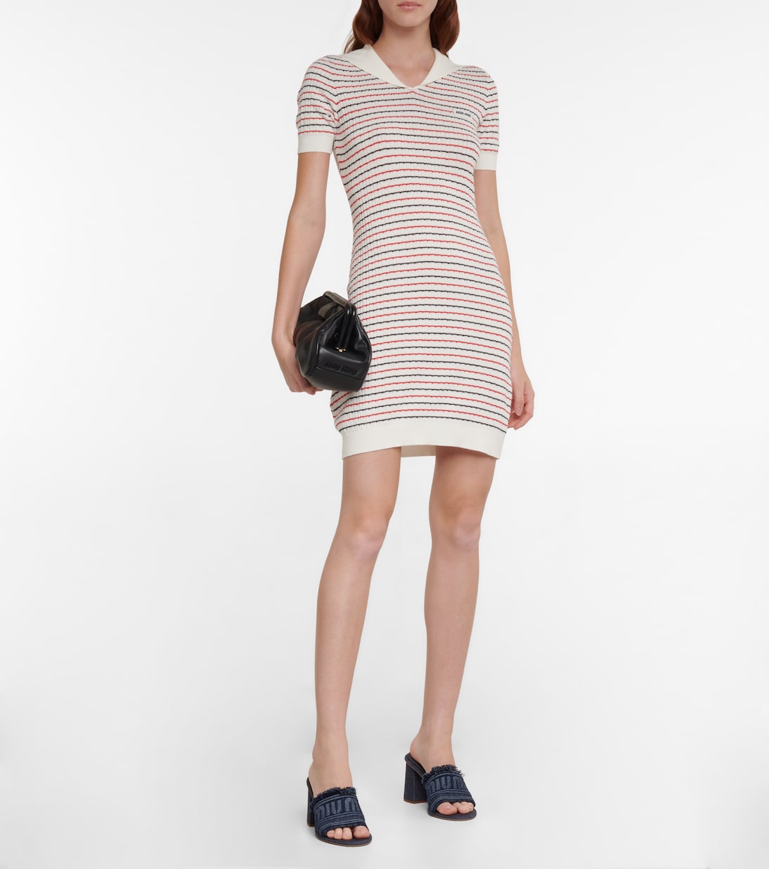 Это полосатое хлопковое мини-платье от Miu Miu сочетает в себе элементы морской тематики и женственные детали. Платье выполнено из хлопка, облегающего кроя, с трикотажем в рубчик, воротничком в морском стиле, короткими рукавами и нашивкой с логотипом.
