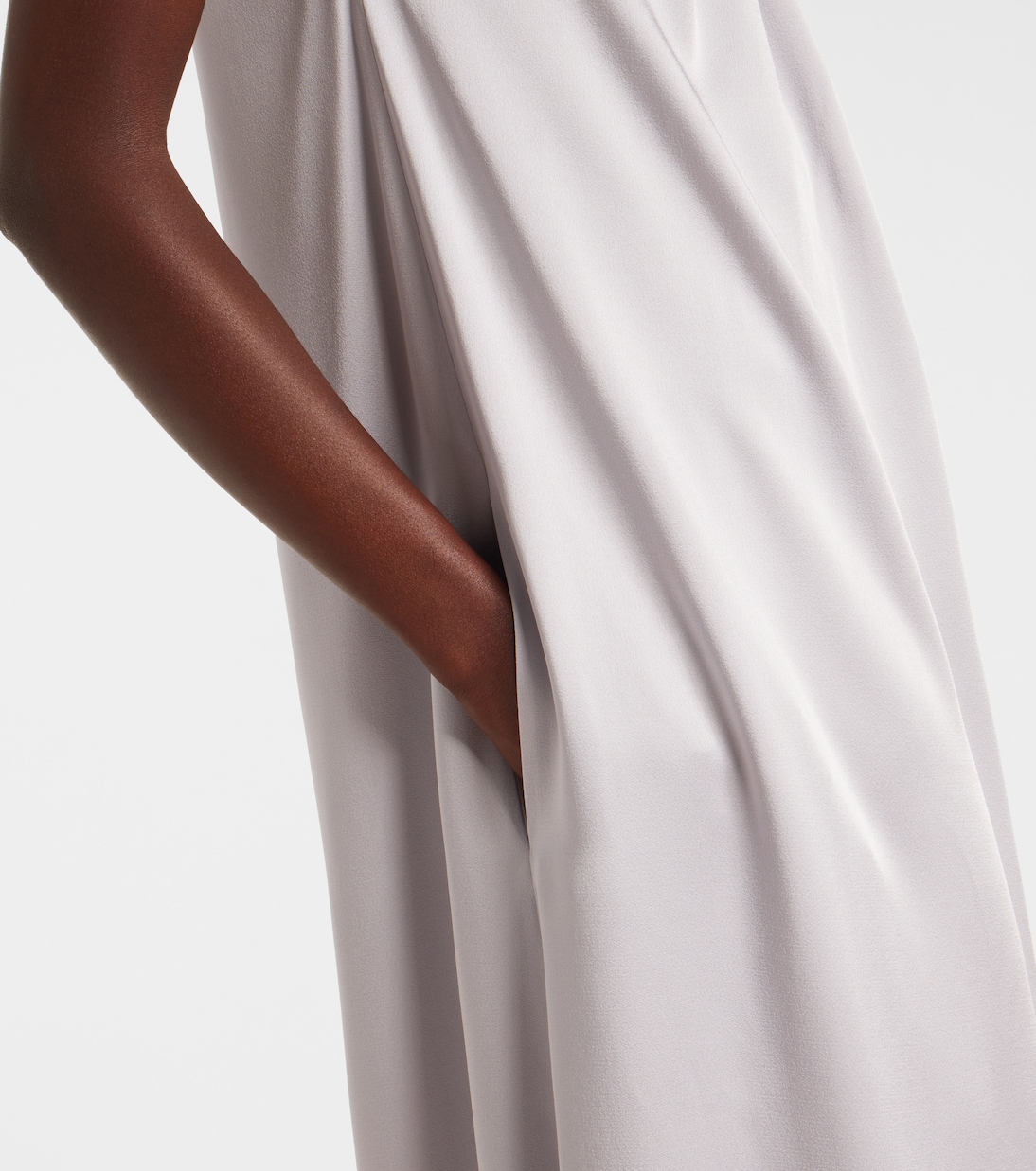 Это элегантное платье от Стеллы Маккартни изготовлено в Италии из атласа. Силуэт халтера подчеркнут металлическими украшениями вокруг шеи.