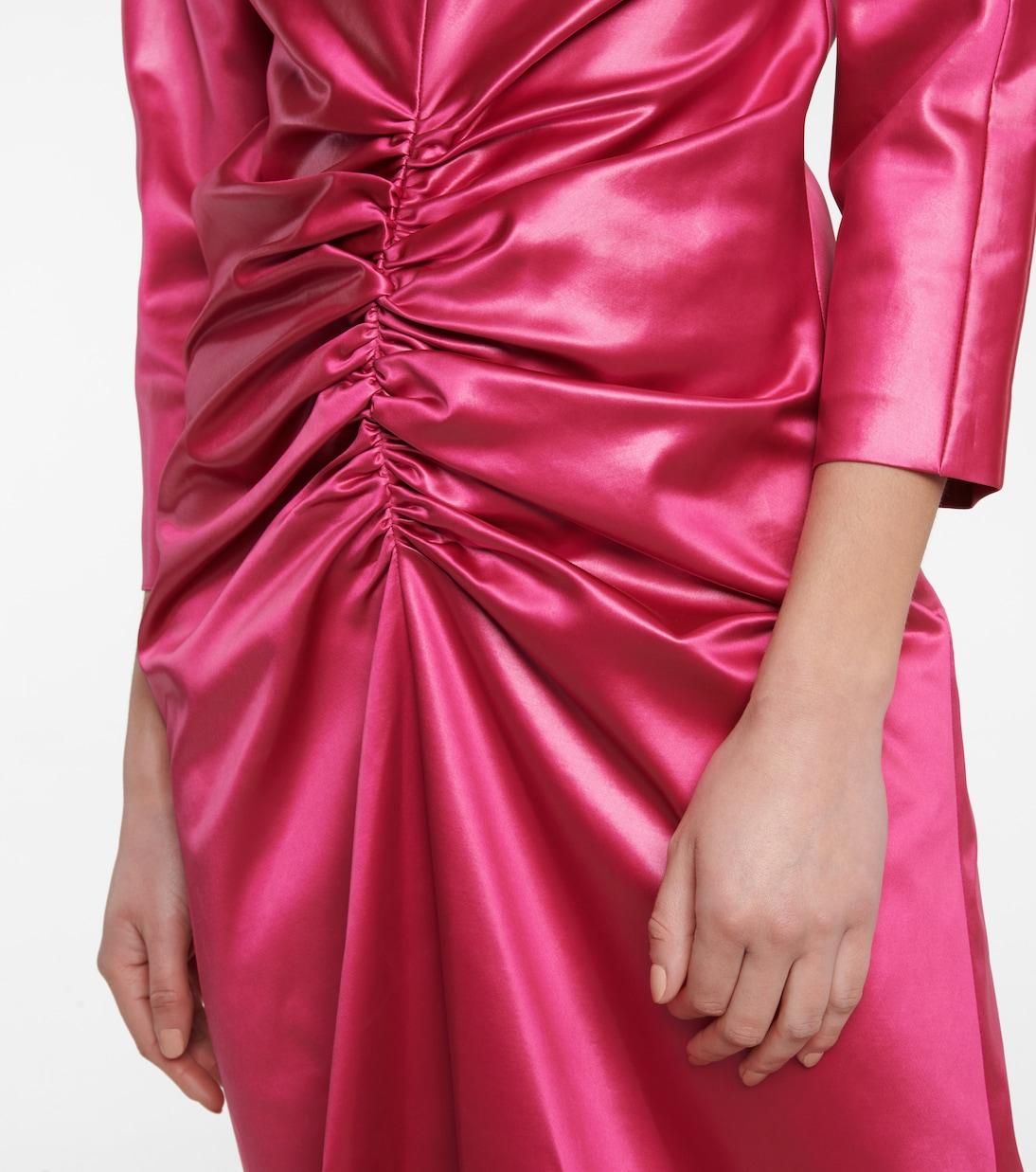 Это яркое розовое платье миди от Marni создаст облегающий силуэт. Платье выполнено из атласа, создающего эффектный лоск, дополнено увеличенным вырезом в форме сердечка и изящной сборкой по лифу. Наденьте украшенный клатч для создания драматического образа в вечернее время.