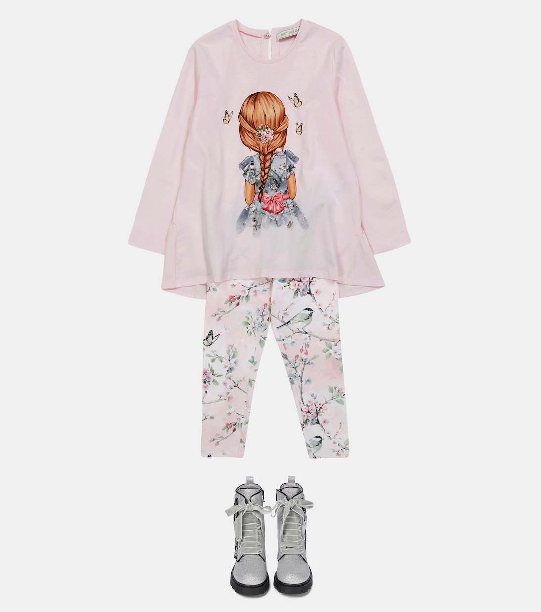 Этот бледно-розовый топ от Monnalisa идеально подходит для повседневной носки. Он выполнен из мягкого хлопкового трикотажа с очаровательной баской и романтичным принтом.