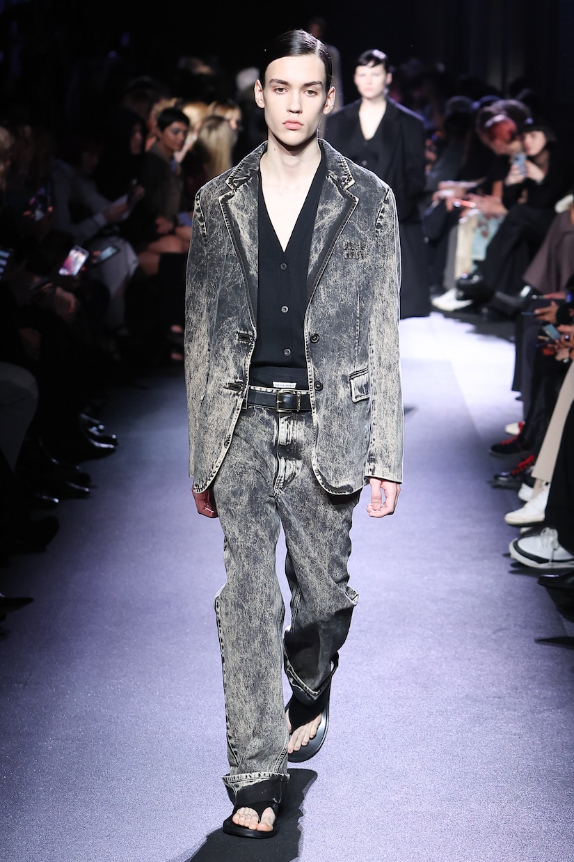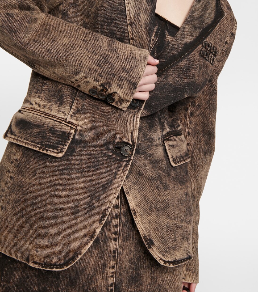 Этот блейзер от Miu Miu выцветшего черного цвета сшит из хлопчатобумажной джинсовой ткани и имеет однобортный перед.
