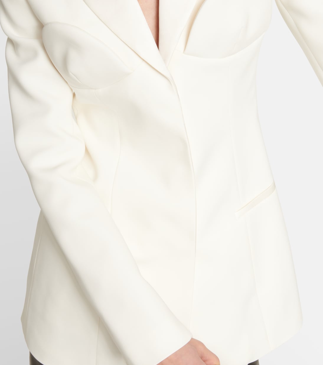 Этот блейзер от Off-White имеет удлиненный силуэт, заканчивающийся ниже бедер. Чистые линии этого кади-дизайна подчеркивают добавленные детали чашек на груди.