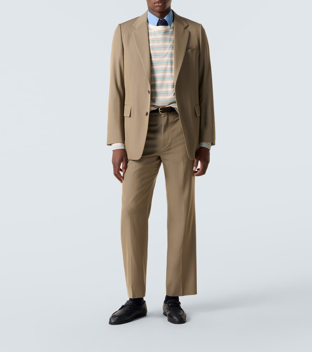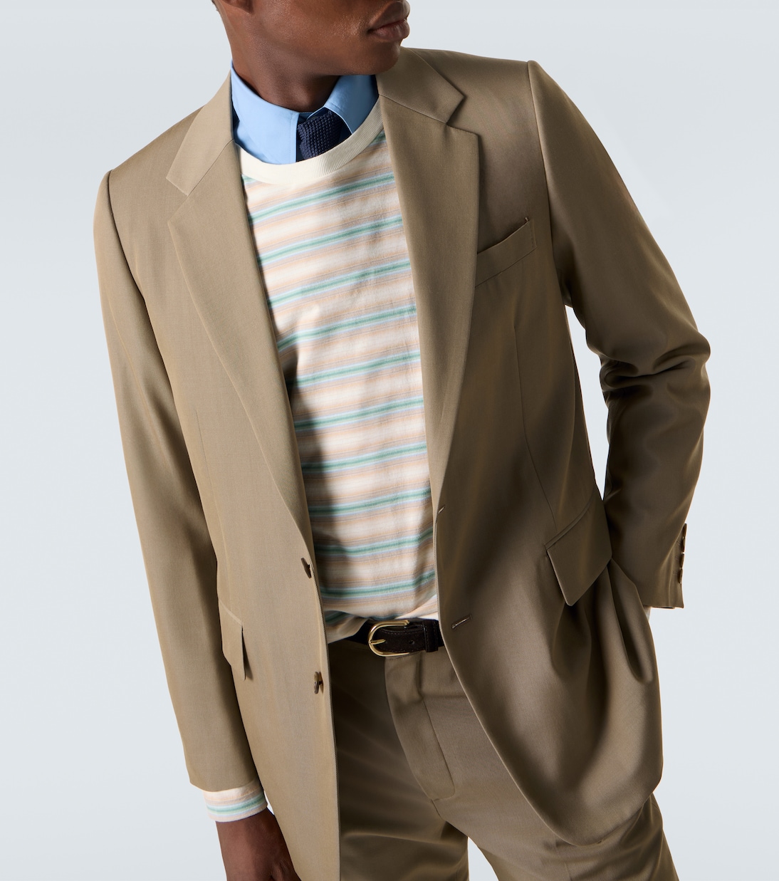 Этот блейзер сшит из фирменного легкого шерстяного габардина Auralee, сотканного из тонких нитей, что обеспечивает гладкую, элегантную отделку. Однобортный фасон, обработанный для обеспечения водоотталкивающих свойств, имеет карманы с клапанами, отвороты с вырезами и манжеты на пуговицах.