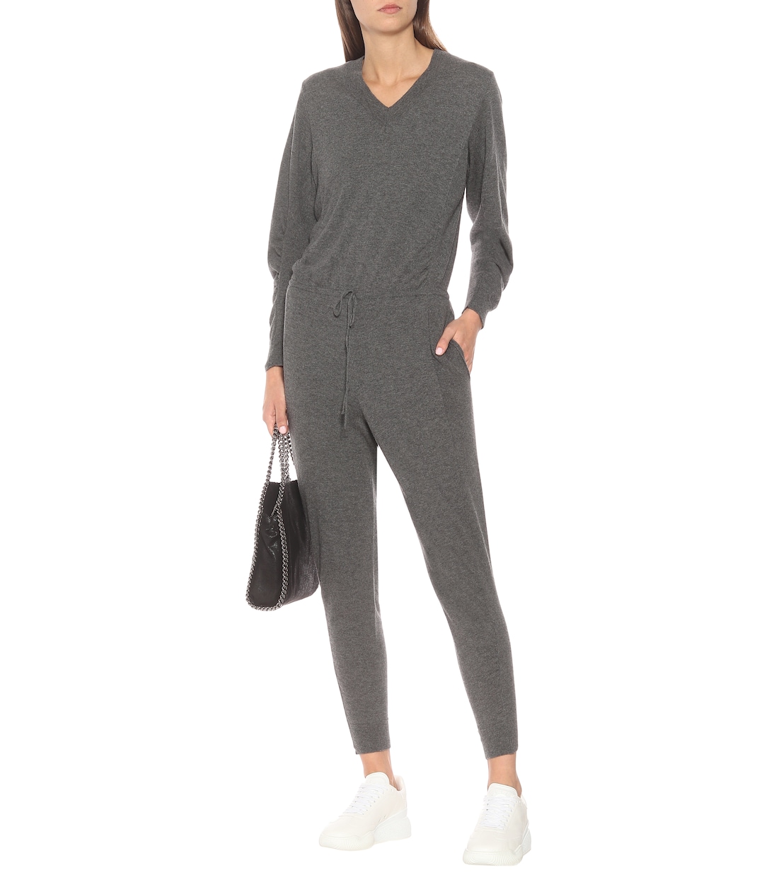 Этот комбинезон от Stella McCartney обладает всеми преимуществами комфорта свитера, но в более плотной форме. Угольно-серая шерсть делает его стильным предметом гардероба на любой сезон: он теплый, легкий и подходит для многослойного ношения. Давние поклонники дома моды узнают присборенные рукава как фирменный стиль и прекрасный завершающий штрих.