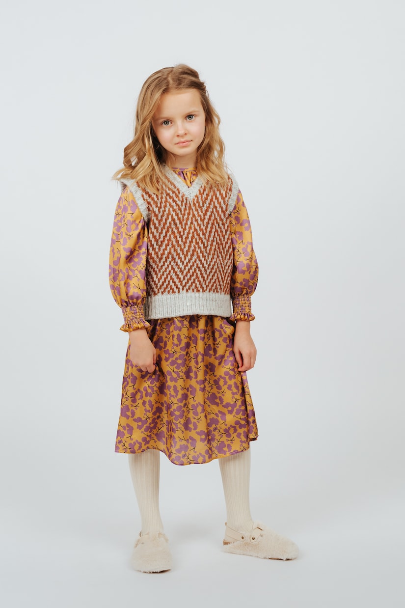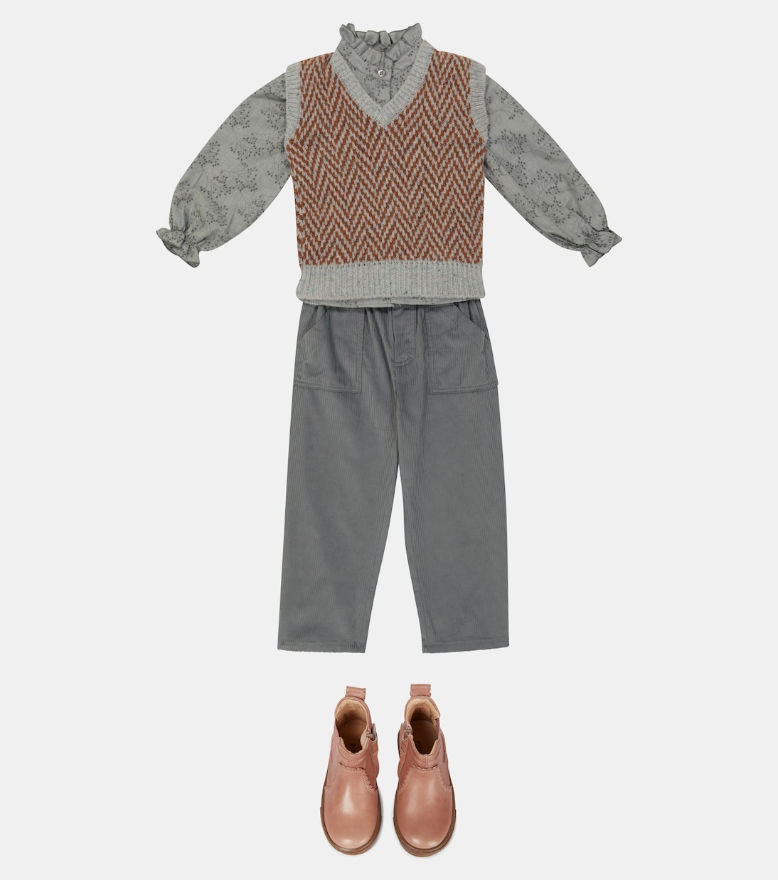 Этот коричневый жилет от paade mode украшен геометрическим узором серого цвета и дополнен соответствующей отделкой. Классический крой включает V-образный вырез и ребристую отделку.