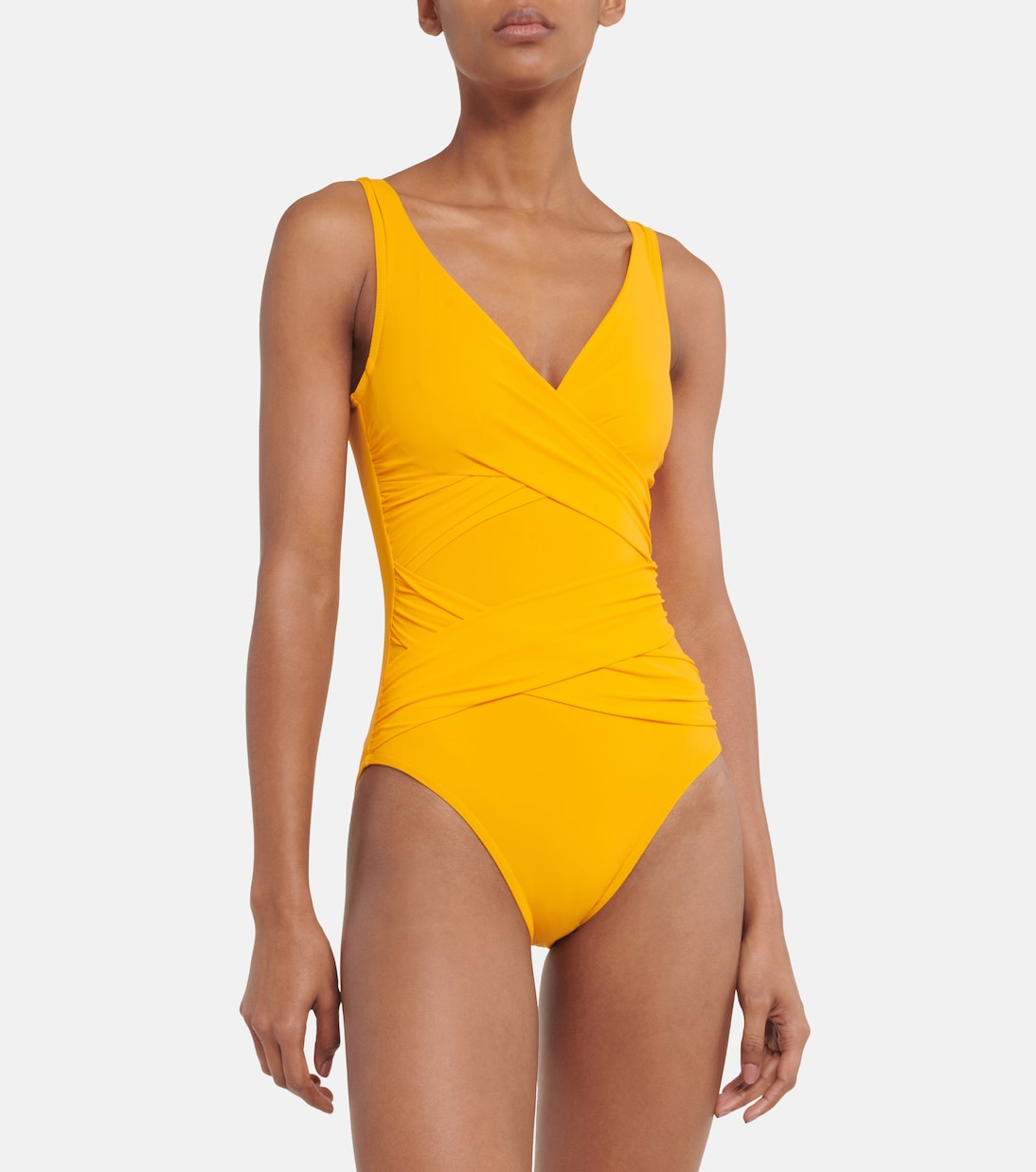 Этот купальник от Karla Colletto представляет собой цельный дизайн с V-образным вырезом. Бюстгальтер с поддержкой на косточках, перекрещивающимися сборками на талии и глубоким вырезом на спине.