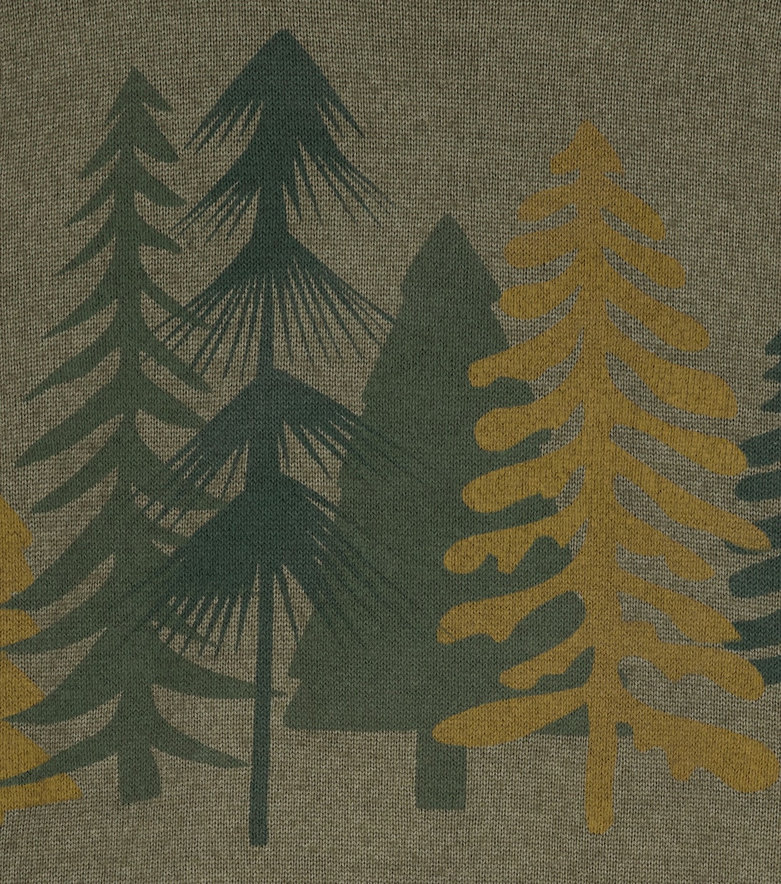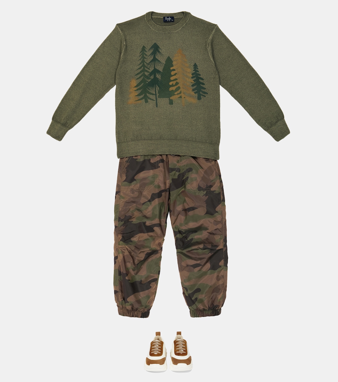 Этот свитер от Il Gufo выполнен в натурально-зеленом цвете с принтом лесного пейзажа на груди. Он изготовлен из чистой шерсти, имеет круглый вырез горловины и ребристые края.
