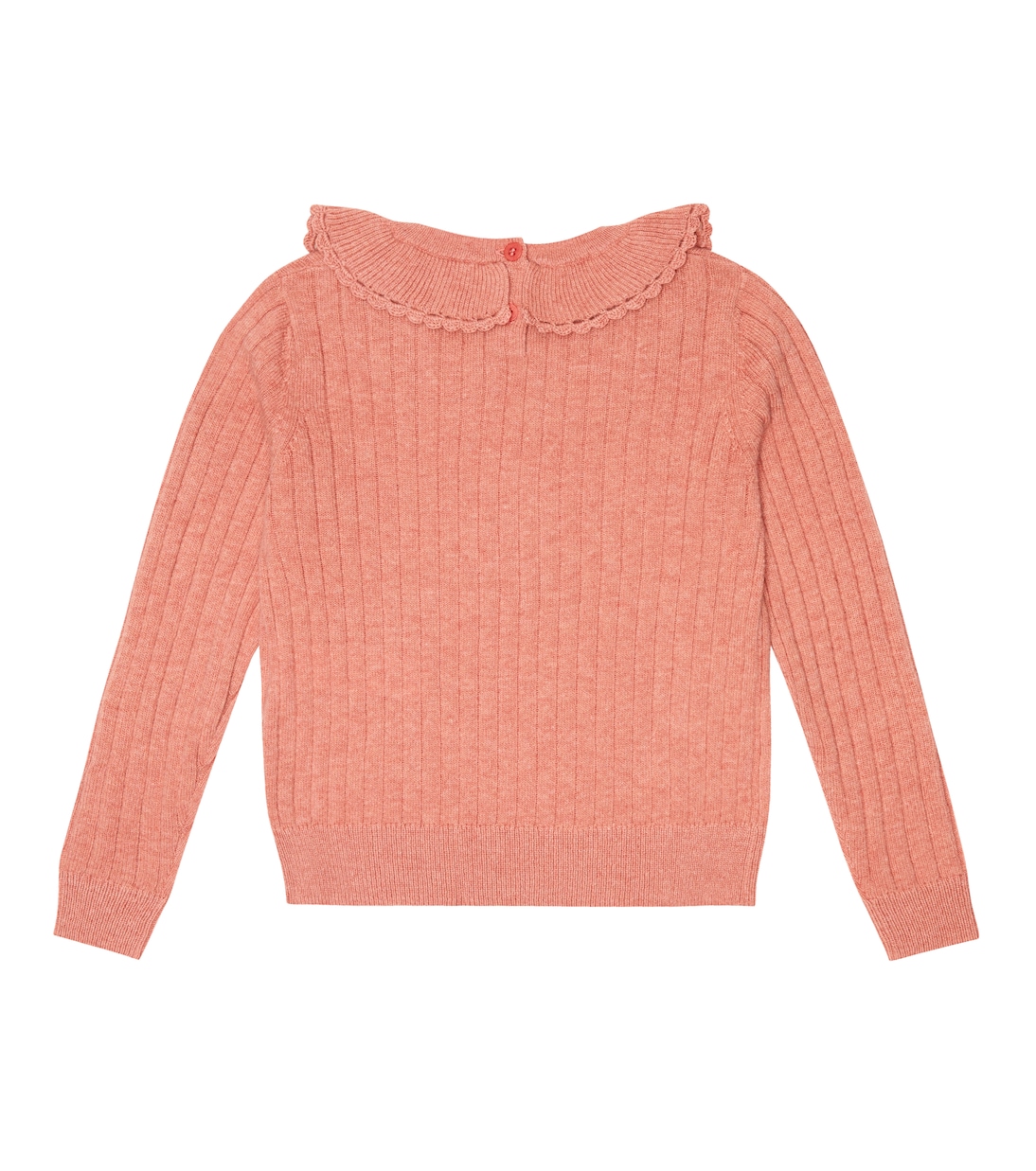 Этот свитер ребристого плетения от Il Gufo выполнен исключительно из тонкой натуральной шерсти. Модель нежно-розового оттенка отличается изящным вязаным воротником и застежкой на одну пуговицу сзади.