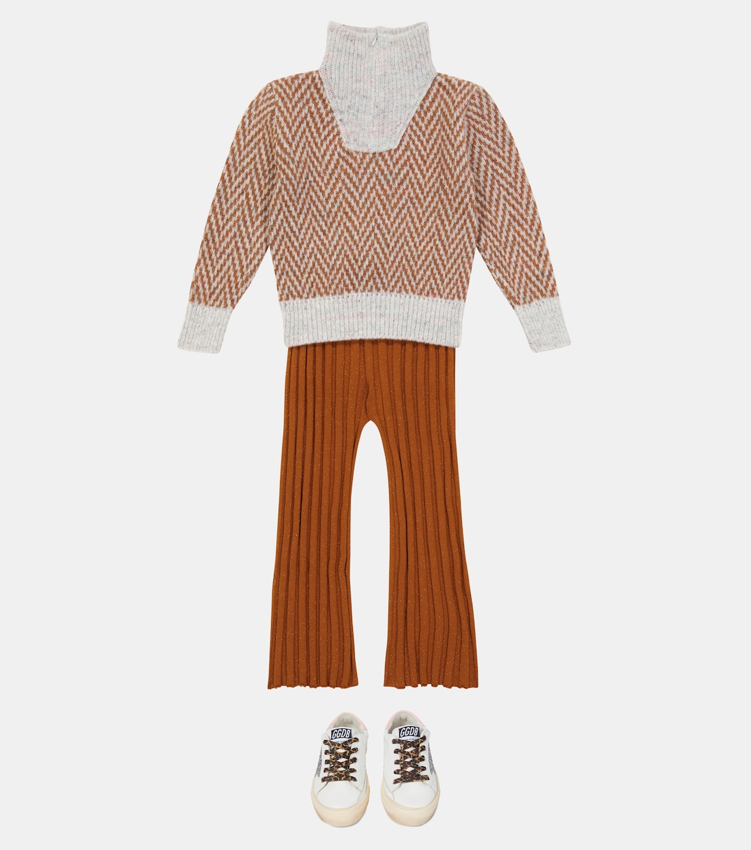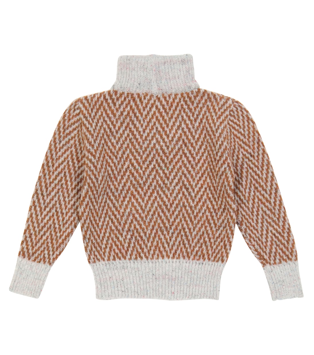 Этот серо-коричневый свитер от Paade Mode украшен характерным геометрическим узором. Он изготовлен из смеси шерсти мериносовых овец и хлопка, имеет частично застегивающуюся молнию спереди и высокий воротник.