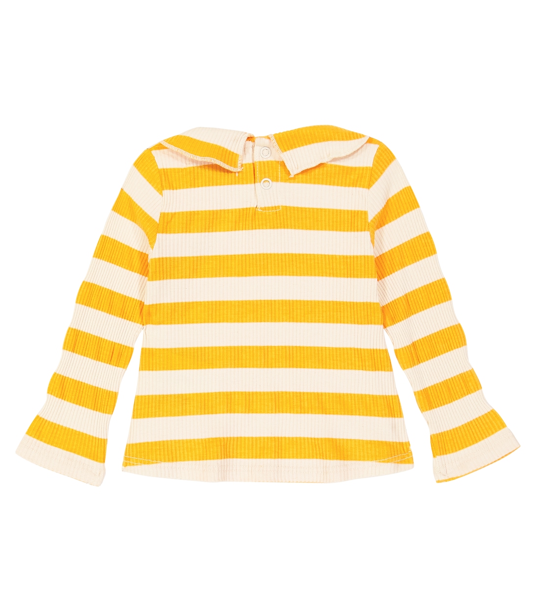 Этот топ из эластичного ребристого трикотажа с ярко-желтым полосатым узором и очаровательным воротником Питер Пэн выполнен в Испании, на родине бренда.