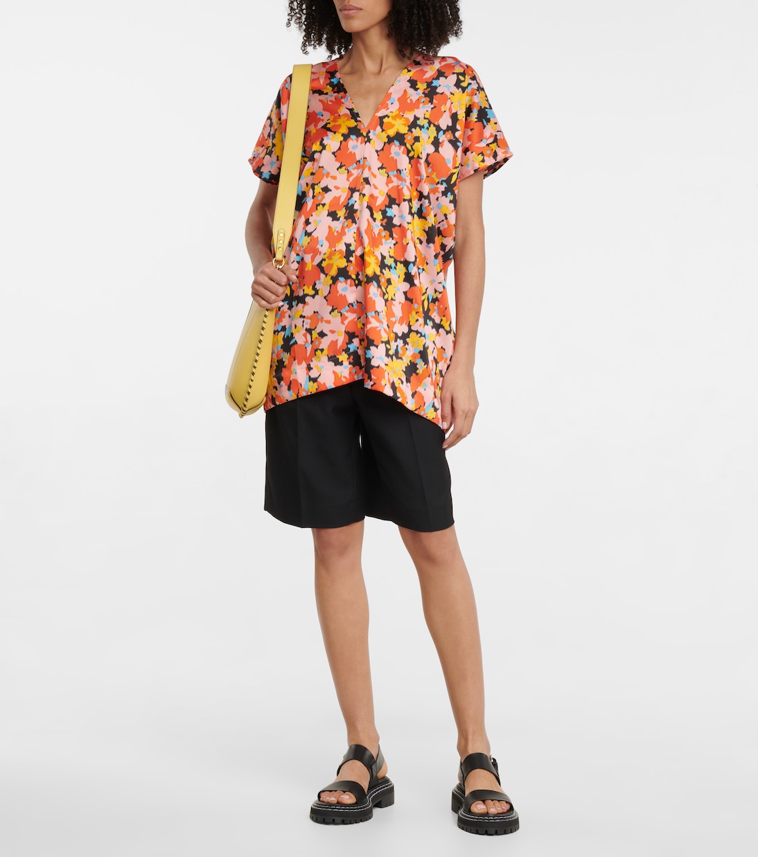 Этот топ от Plan C с ярким цветочным мотивом - воплощение весны. Он скроен из блестящей саржи и имеет свободный силуэт с V-образным вырезом.