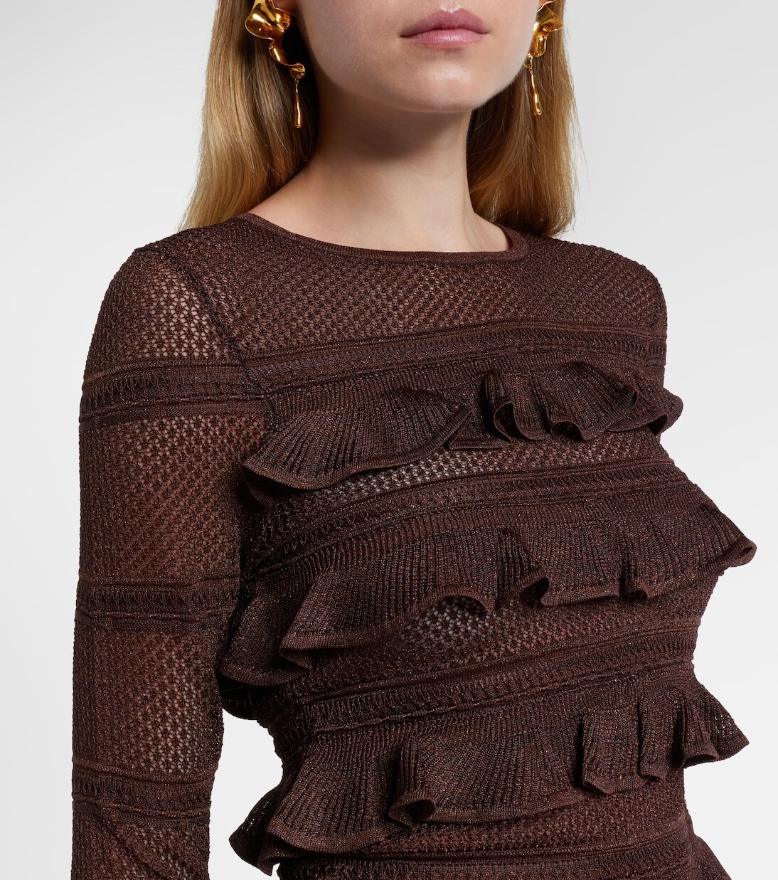 Этот топ с длинными рукавами от Zimmermann играет с текстурой и объемом, обеспечивая гарантированный эффект. Модель из коллекции Hypnotic бренда украшена оборками на лифе и рукавах.